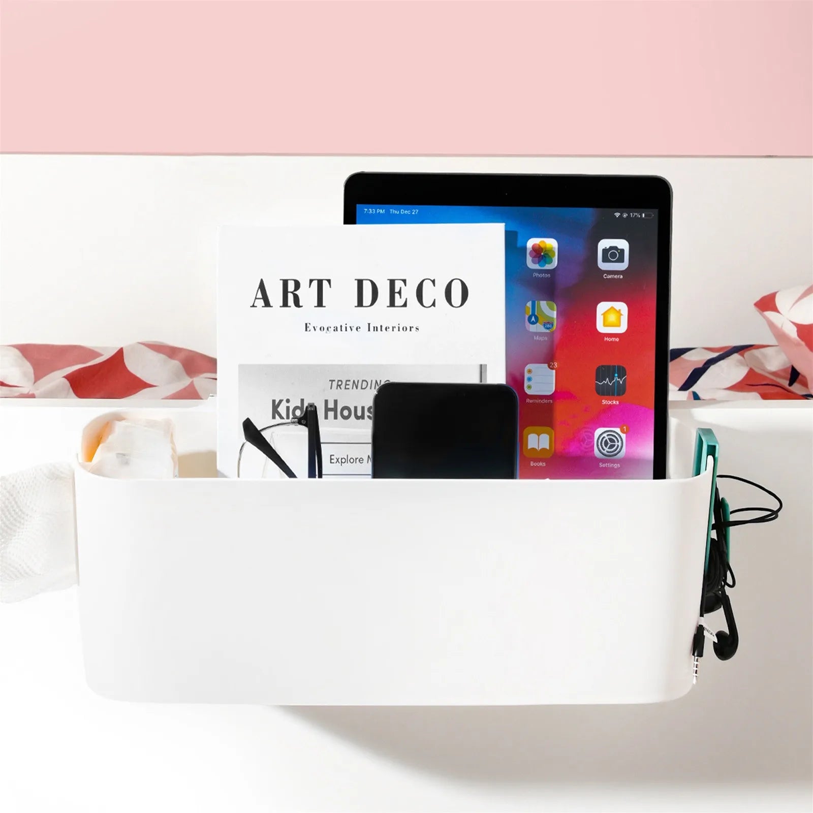 Bedside Hanging Basket Organizer with Hooks Dorm Bunk Beds Shelf Table Storage Holder for Remote Controls Magazines Phone