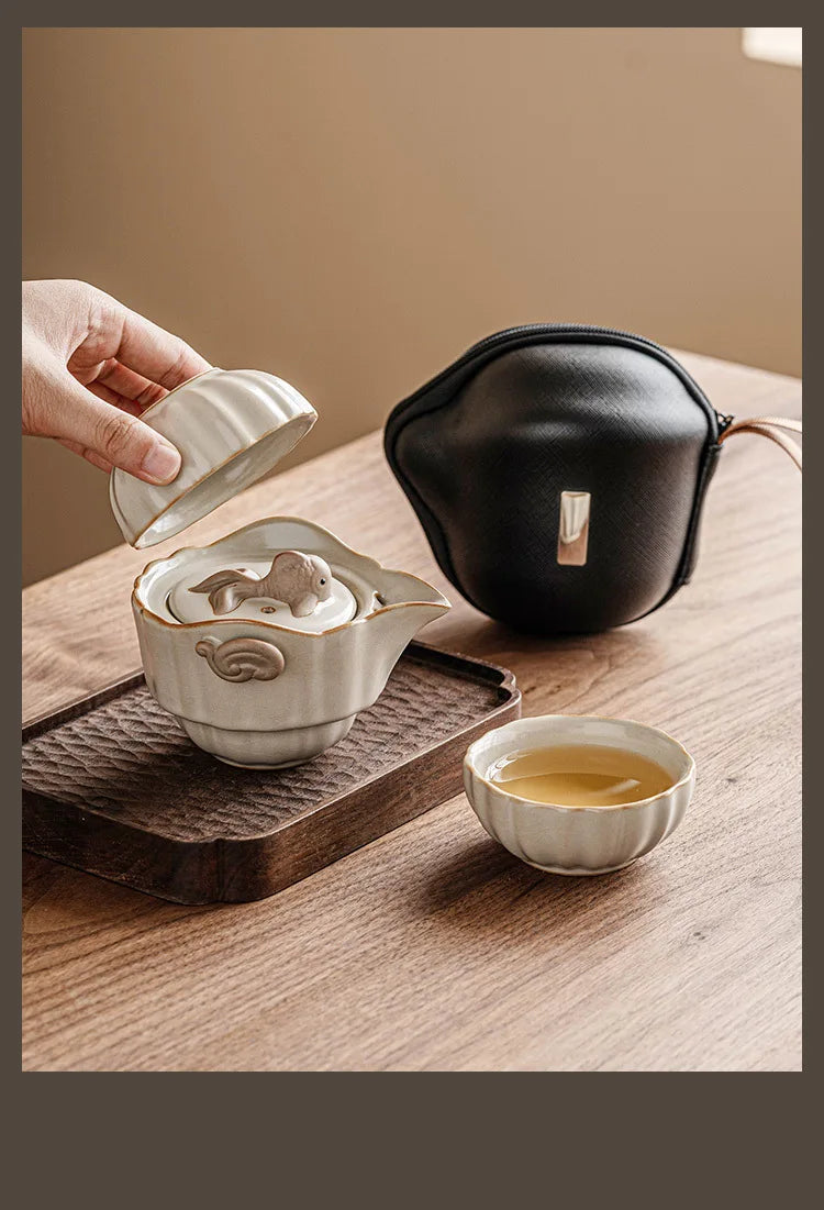Beige Ru Ware Travel Tea Set Portable Outdoor One Pot Two Cups Porcelain Brewing Equipment Suit
