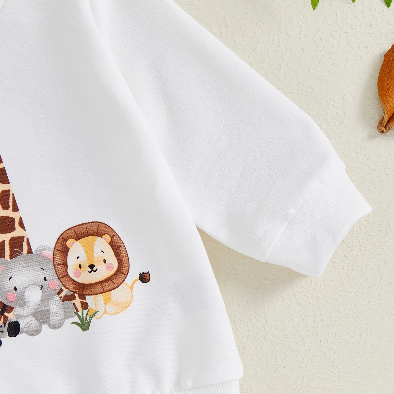 BeQeuewll Toddler Infant Clothes for Kids Fall Suit First Birthday Outfits Animal Print Long Sleeve Sweatshirt Pants Kids Sets