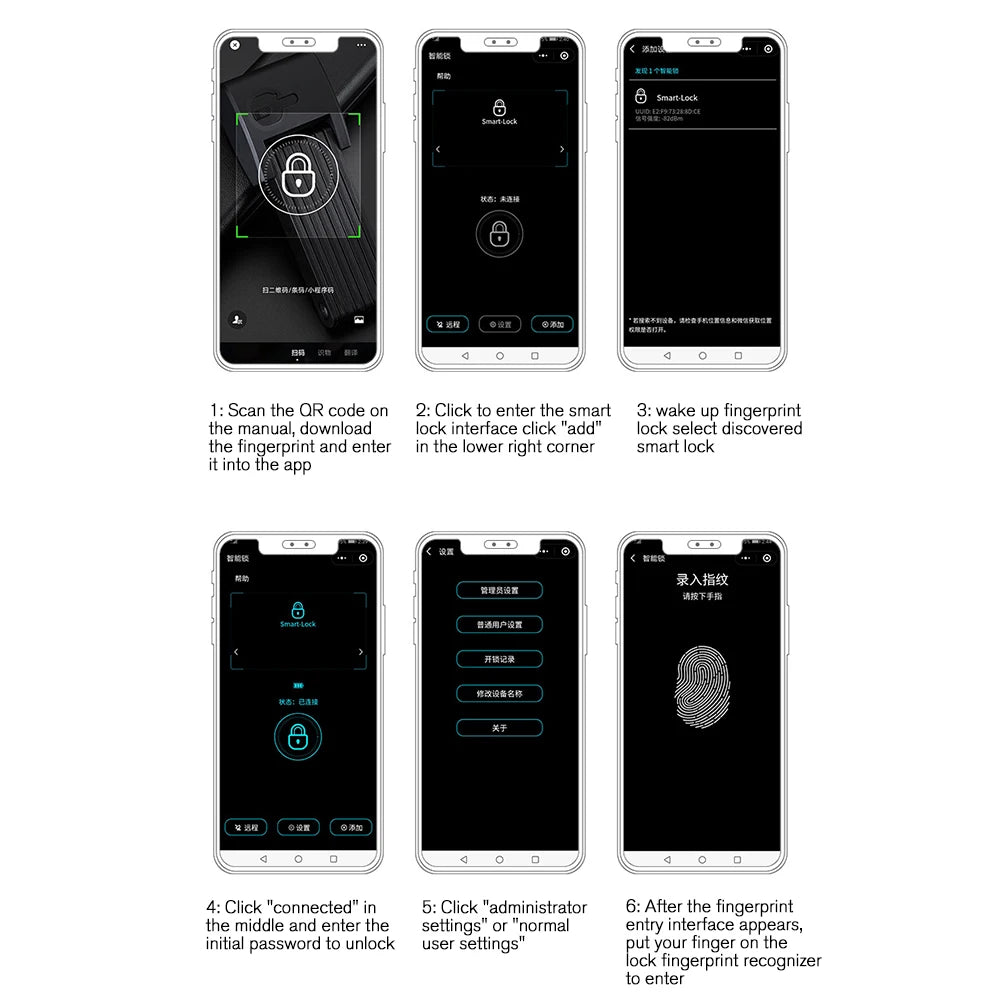 Unlocking method: 1: Fingerprint unlocking (main) 2: APP Bluetooth unlocking 3: Key unlocking