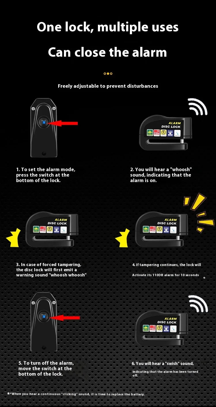 Bike Lock Bicycle Disc Brake Lock Alarm Protection Electric Bikes Locks Motorcycle Brake Disc Anti-theft Locks Cycling Equipment