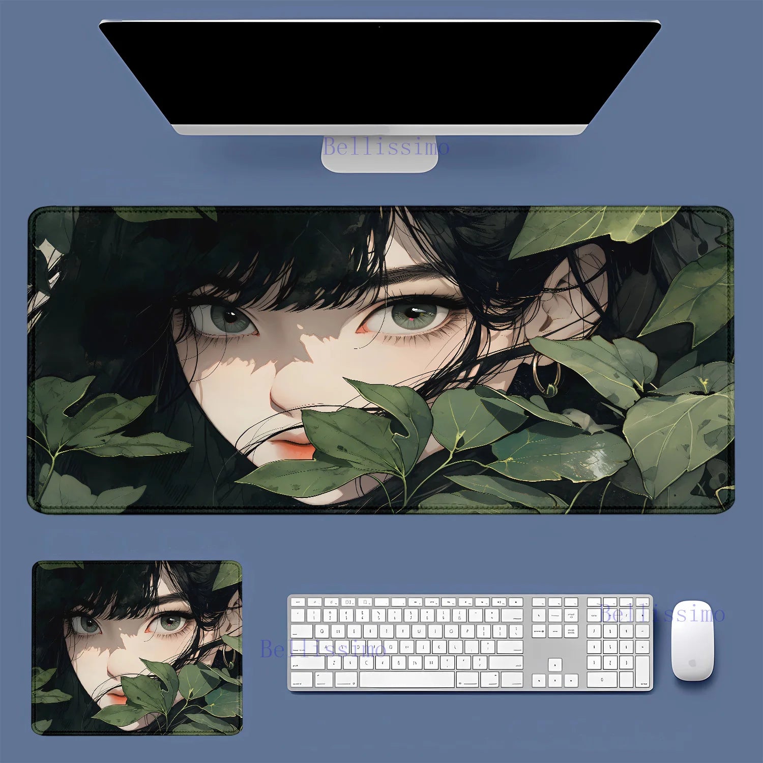Black Cat and Girl Fast Keyboard pad lock-edge Extended teclado mousepad kawaii Purple Office desktop protection mouse pad XXL