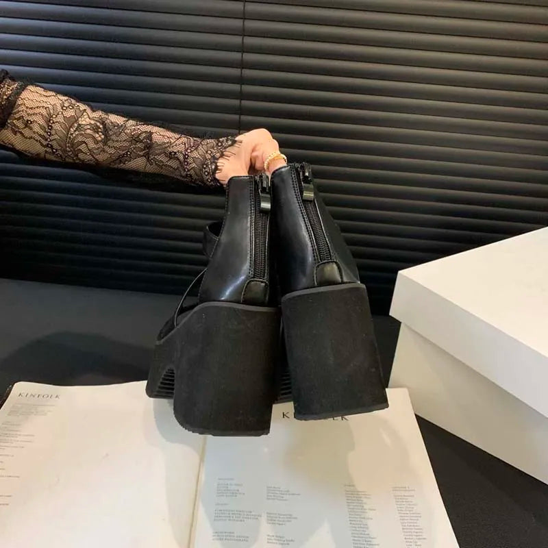 Black Gladiator Sandals Woman Platform High Heels Summer Back Zipper Shoes Punk Chunky Sandals Female Samdalias De Plataforma
