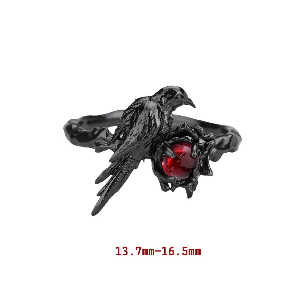 Black Raven Ring - Gothic Horror Handmade Artisan Rings, Promise Cubic Zirconia Jewelry Gift for Women