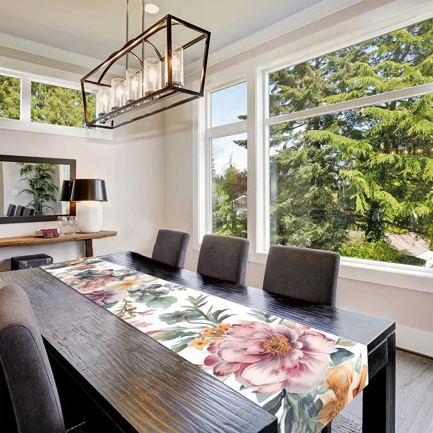 Blue Tulip Table Runner for Dining Table Kitchen Decor Anti-stain Dining Table Tablecloth Rectangular Dining Table Runner