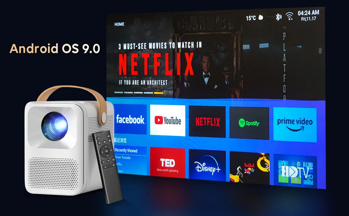 Bluetooth Support Mobile Phone Home Theater Projector Bluetooth Mini 4k Android 9 Projector