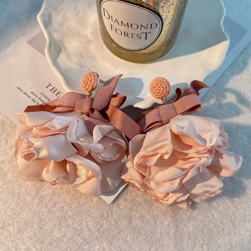 Bohemian Flowers&Bow Big Dangle Earrings For Women Girl Trendy Luxury Vintage Fairy Wedding Party Jewelry Accessoies