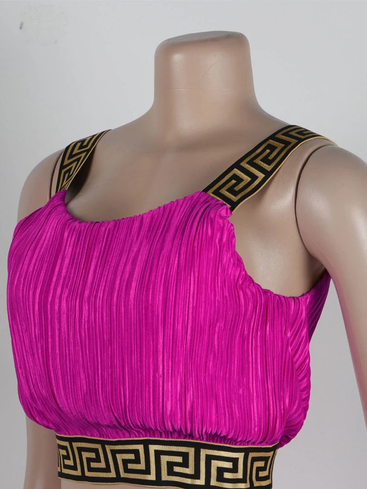 Bonnie Forest Elegant Sleeveless Printed Rcuhed Crop Top And Palazzo Pants Set Chic Tracksuit Female Clubwear Night Club Outfits