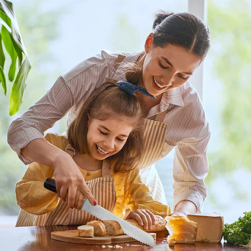 Bread Knife,8 inch Serrated Knife,Damascus laser Pattern Steel Bread Knife for Homemade Bread,Razor Sharp Edge for Slicing Bread