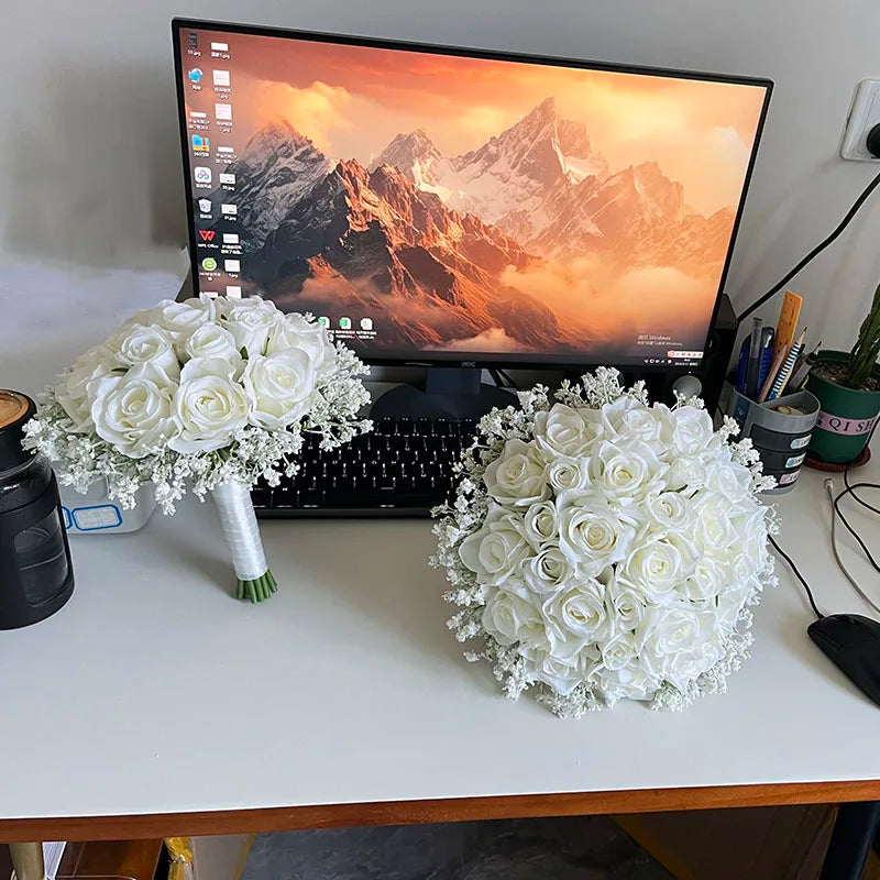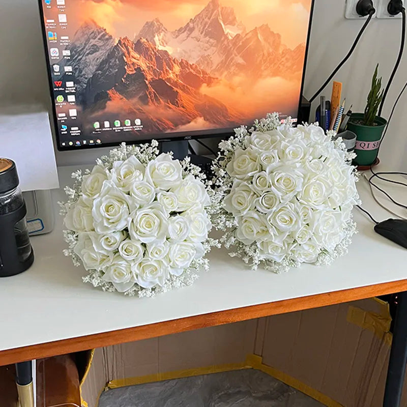 Bridal Bouquet Wedding Flowers Bridesmaids Silk Roses Fake Babys Breath Bride Wedding Accessories Table Centerpiece Decoration