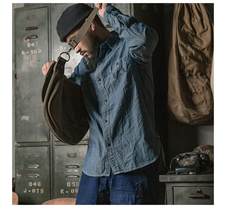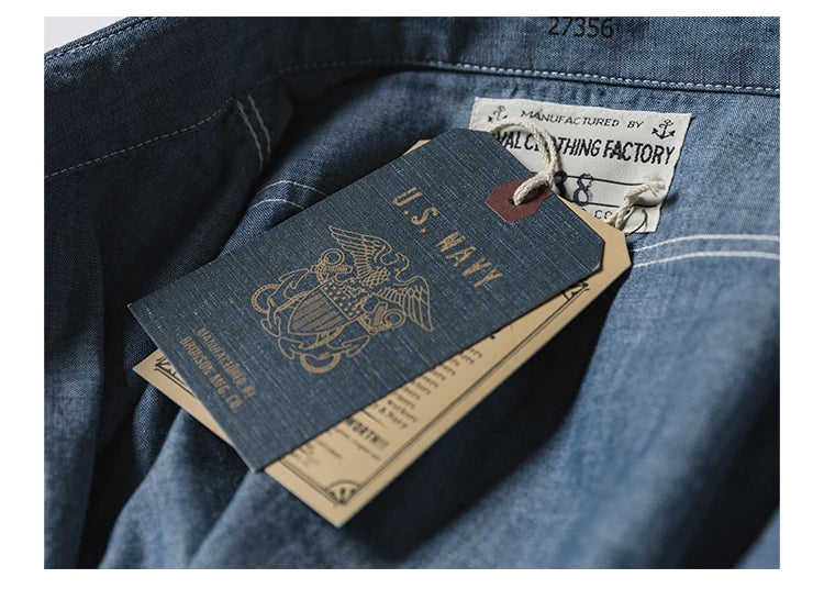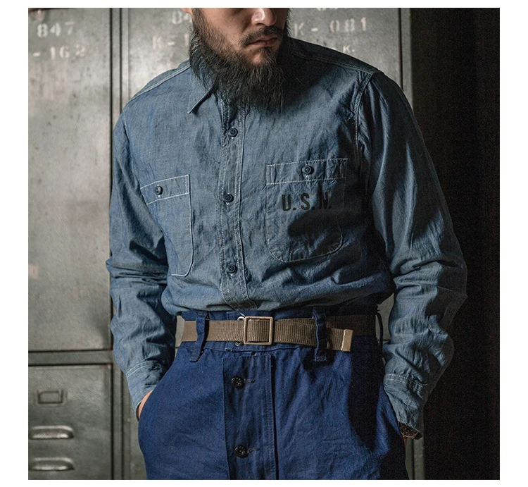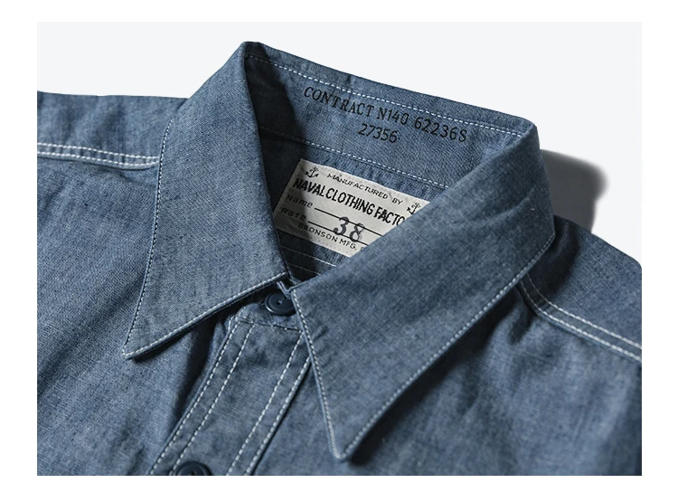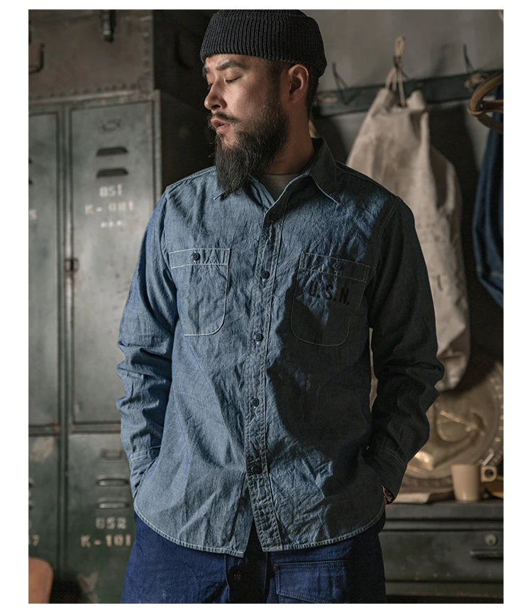 Bronson Repro USN Chambray Work Shirt Rugged Men's Selvedge Workwear Light Blue