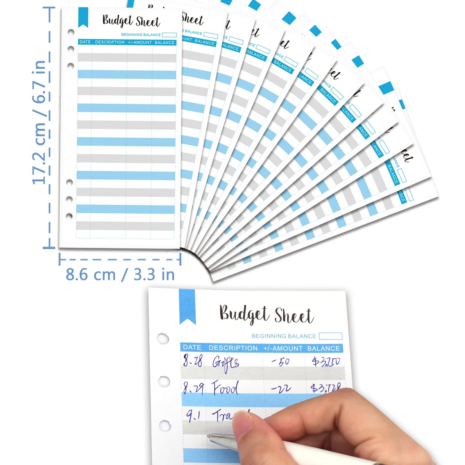 Budget Binder with Zipper Envelopes, Cash Envelopes with Budget Sheets, PVC Pockets, Cash Envelopes, Stickers & Pen