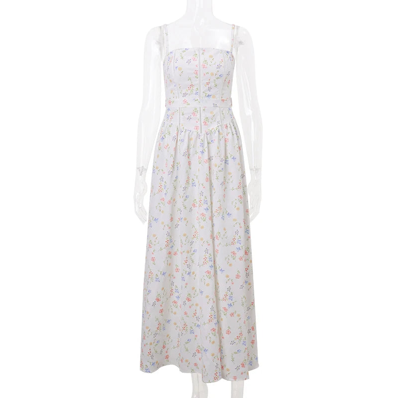 Candyhot Elegant Slim Pleated Print Sleeveless Maxi Dresses Aesthetic Off Shoulder Spaghetti Strap Dress Women Party Vestidos