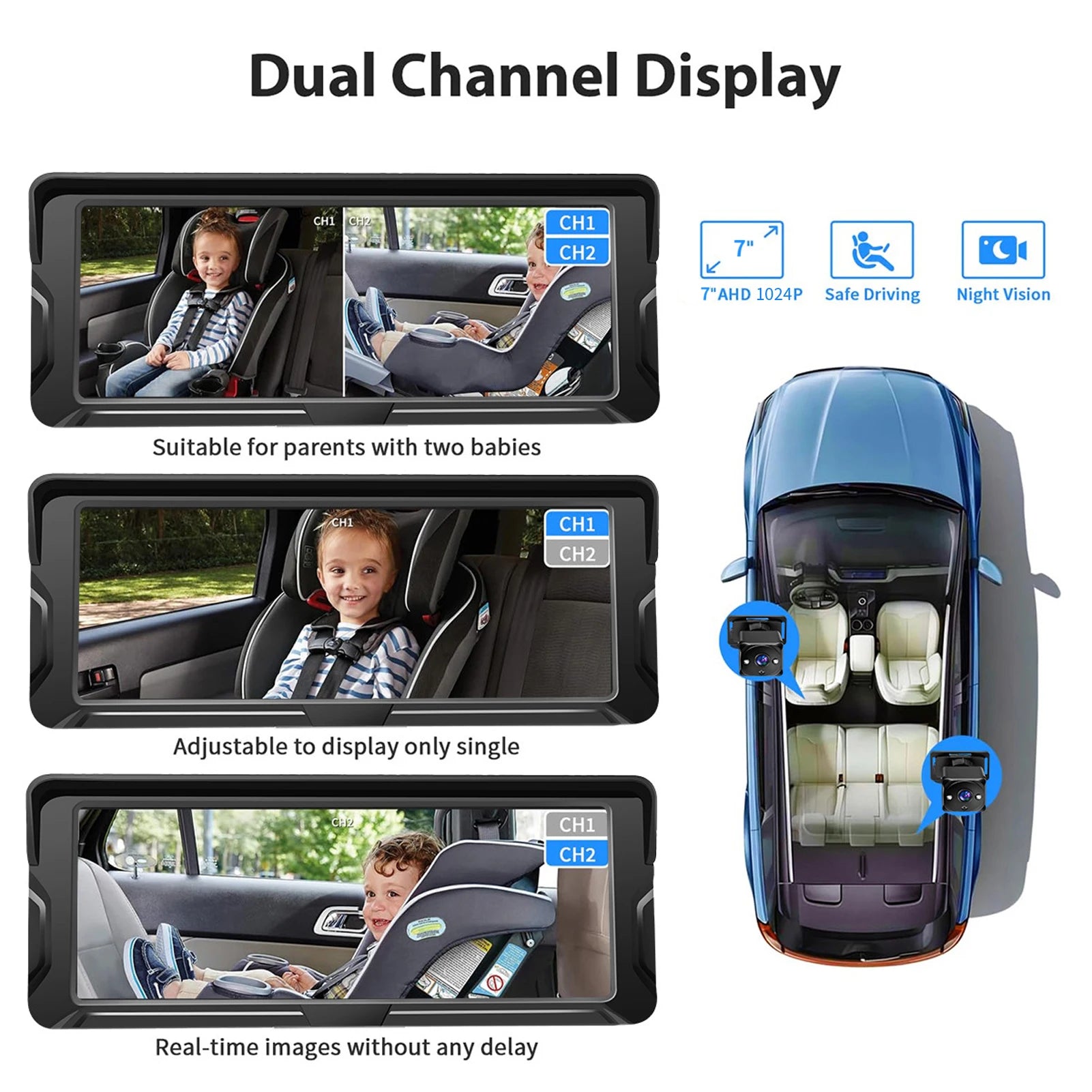 Car Baby Camera Dual Channel 6.8inch 1080P Display with 2 IR Night Camera and 150° Wide View Angle Automotive Baby Camera