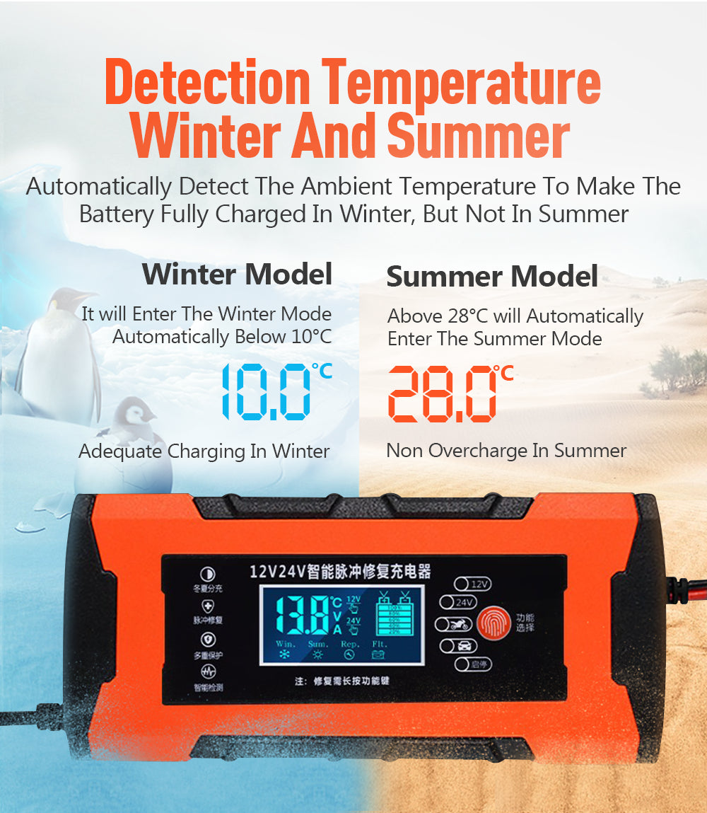 Car Battery Charger 12V 10A 24V 5A Automotive Digital Display Detection Pulse Repair Car Chargers Motorcycle Car Accesorries