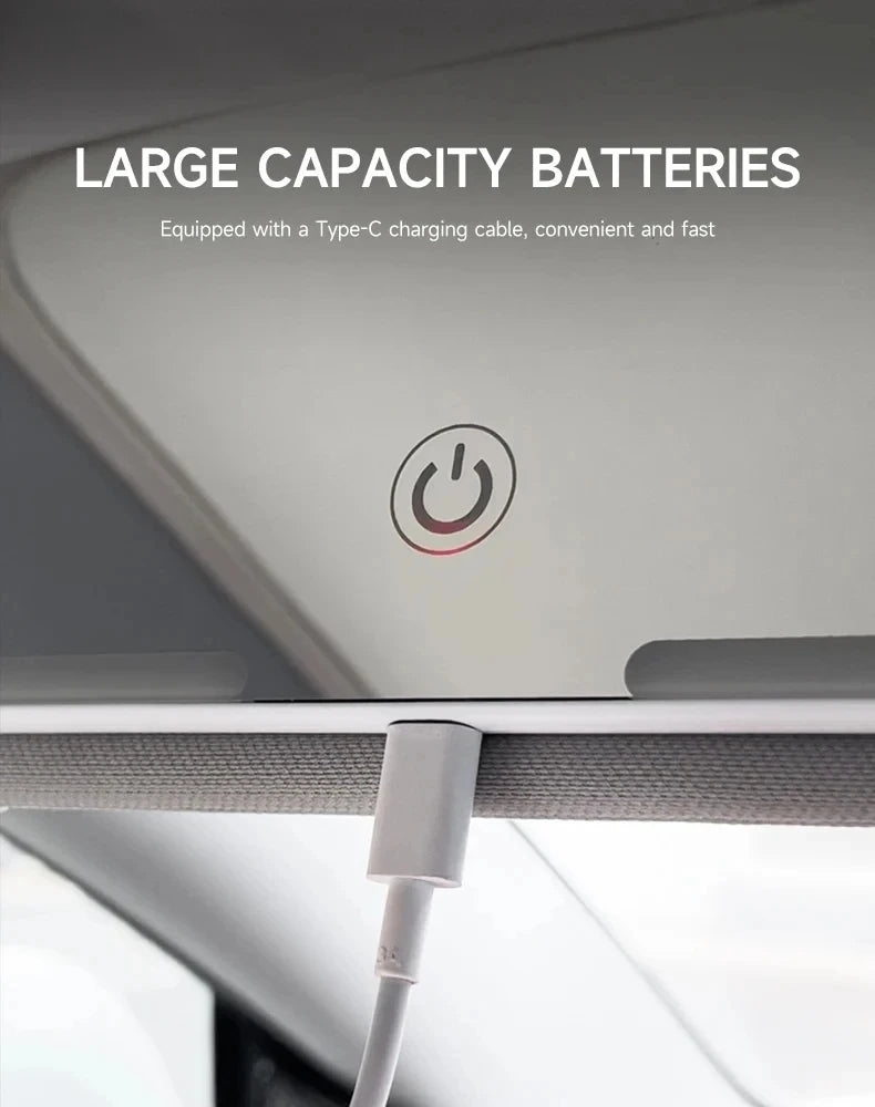 Car interior mirror, sun visor, LED high-definition makeup mirror, 3-mode touch screen adjustment,USBcharging,car makeup mirror