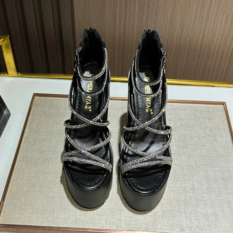 Car Model Catwalk Banquet Performance Women's Shoes 16 Cm Waterproof Pole Dance Crystal 15CM High Heel Chunky Sandals