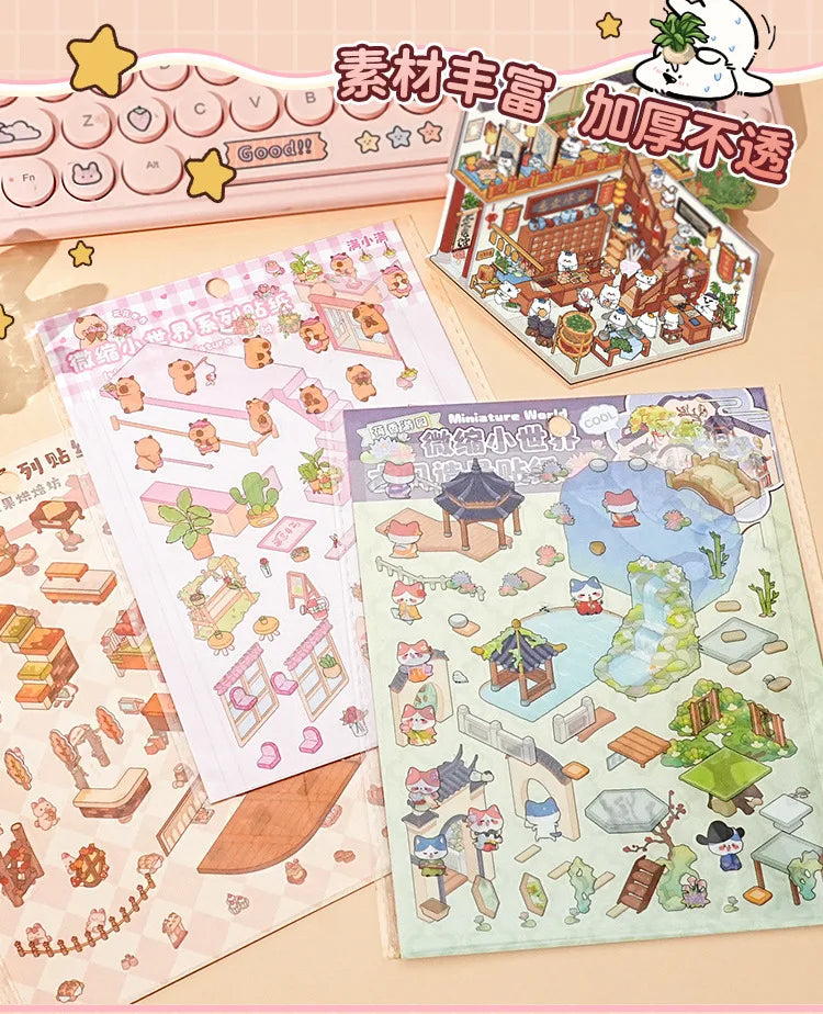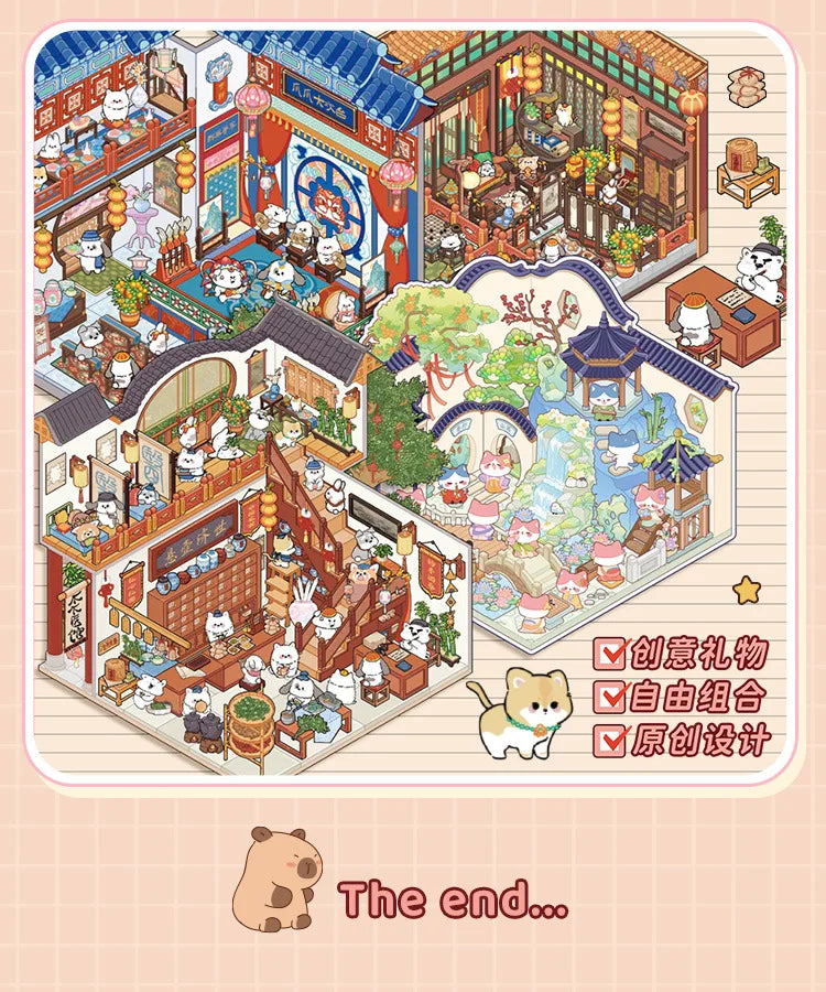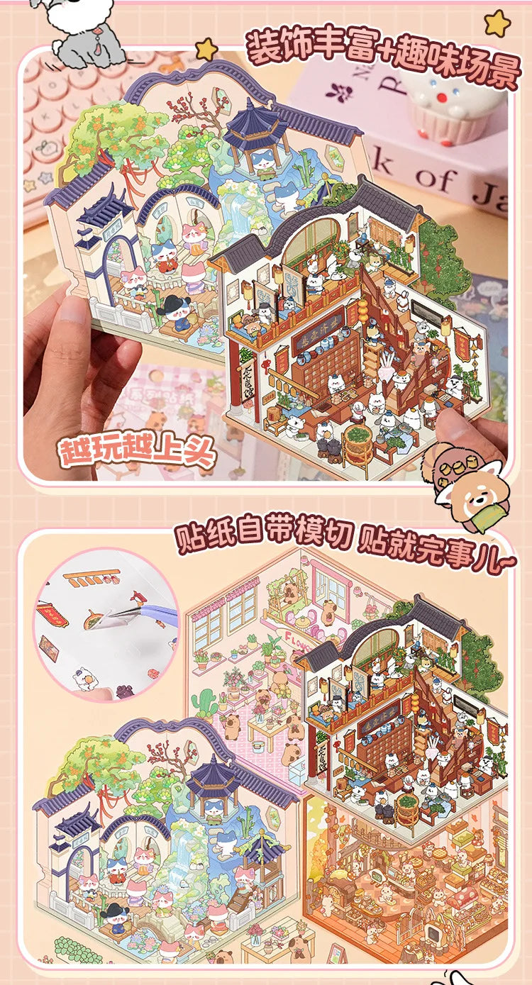 Cartoon 3D Chinatown Landscape Sticker Theater Pharmacy Restaurant DIY Pocket Cabin Scene Stickers Gift for Kid Child