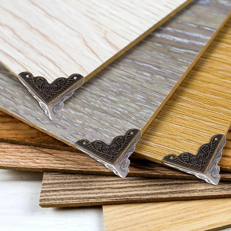 Carved Wooden Boxes Corner Protector Metal Edge Corners Guard Cover with Screws Wood Case Furniture Dresser Table Decoration