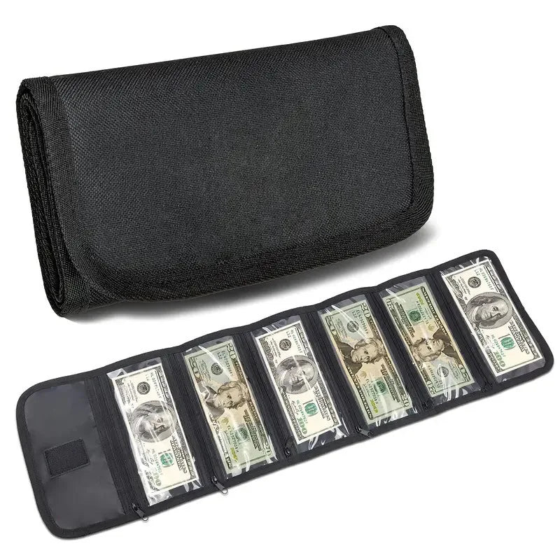 Cash storage box with 6 zippered pockets, cash ticket storage box, envelope wallet money bag