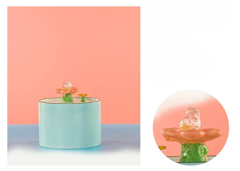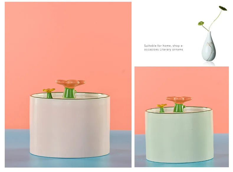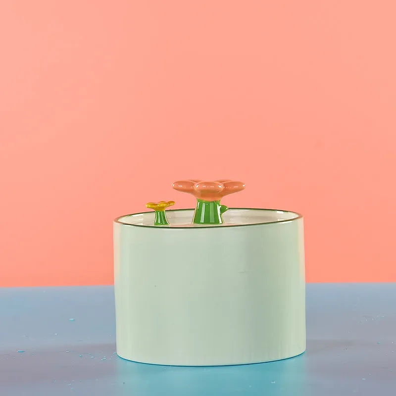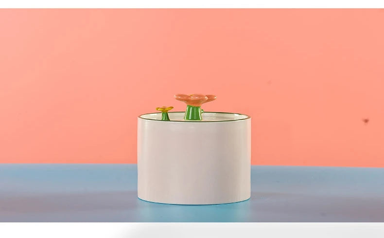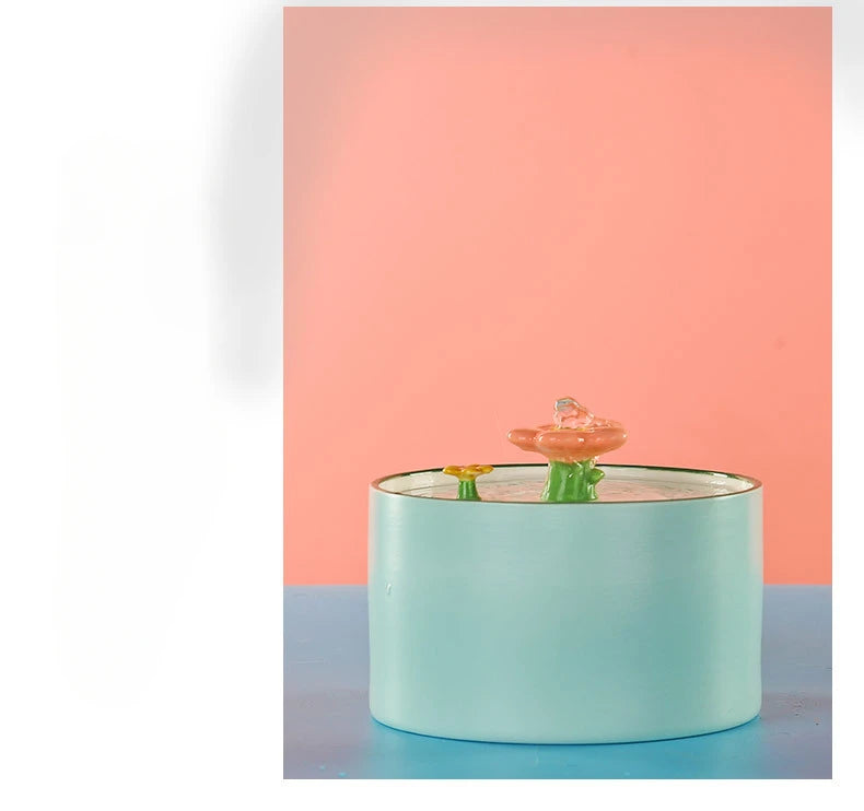 Cat Ceramic Flower Water Fountain Drinking Feeders Pets