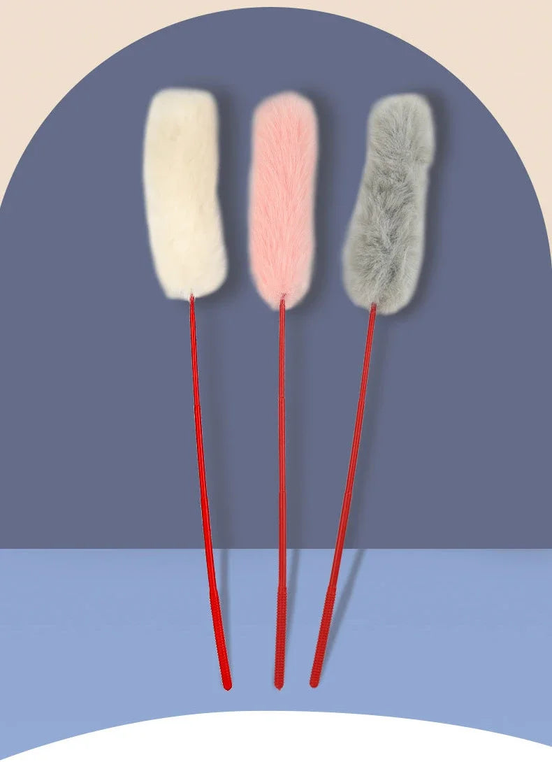 Cat Toys Interactive Cat Stick Faux Rabbit Fur Pompom Plush Pet Interactive Stick Cat Playing Training Toys Pet Supplies