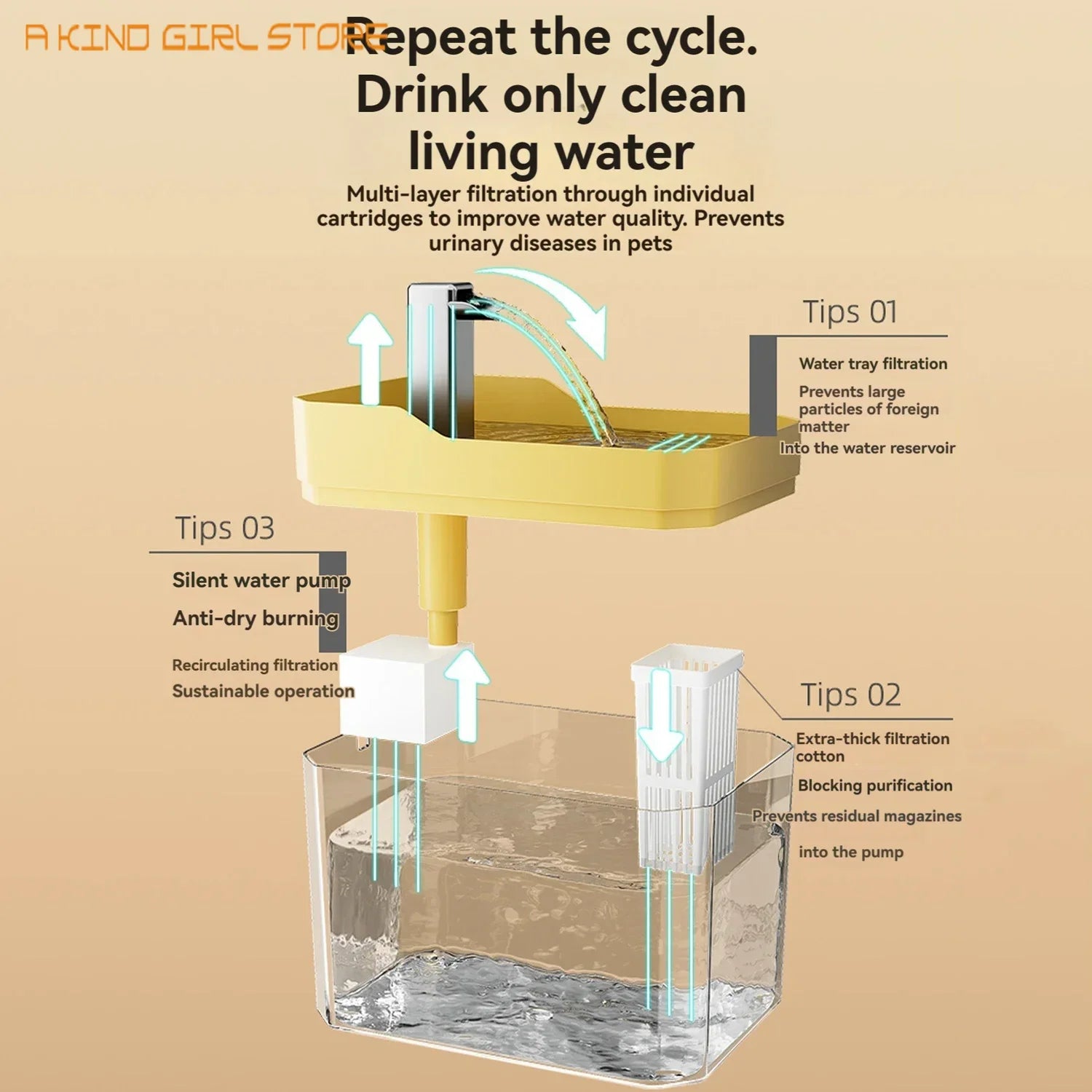 Cat Water Fountain Auto Filter Transparent Cat Drinker USB Anti-Dry Burning Recirculate Filtering Water Dispenser with Pump