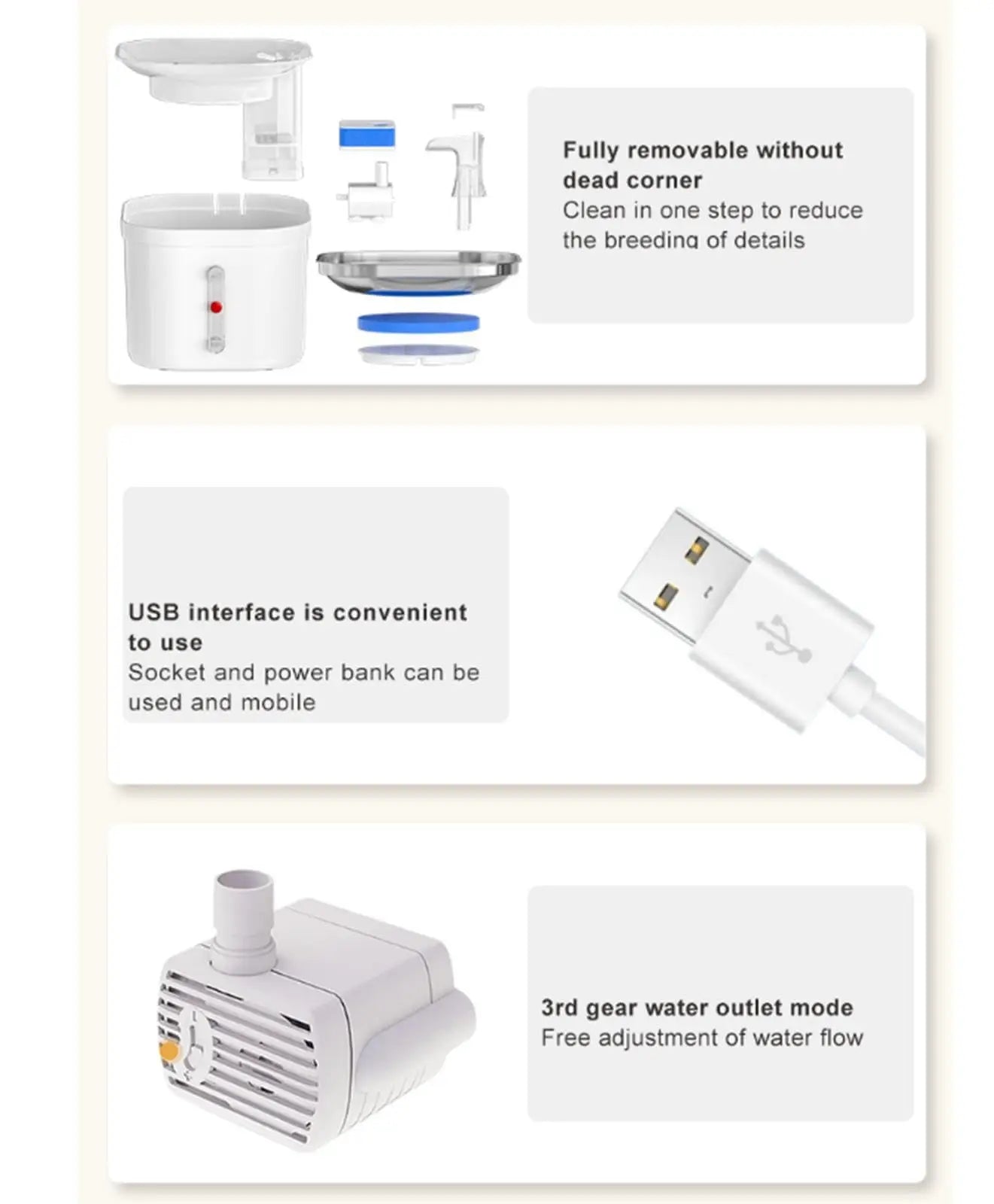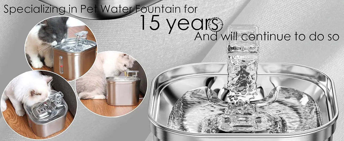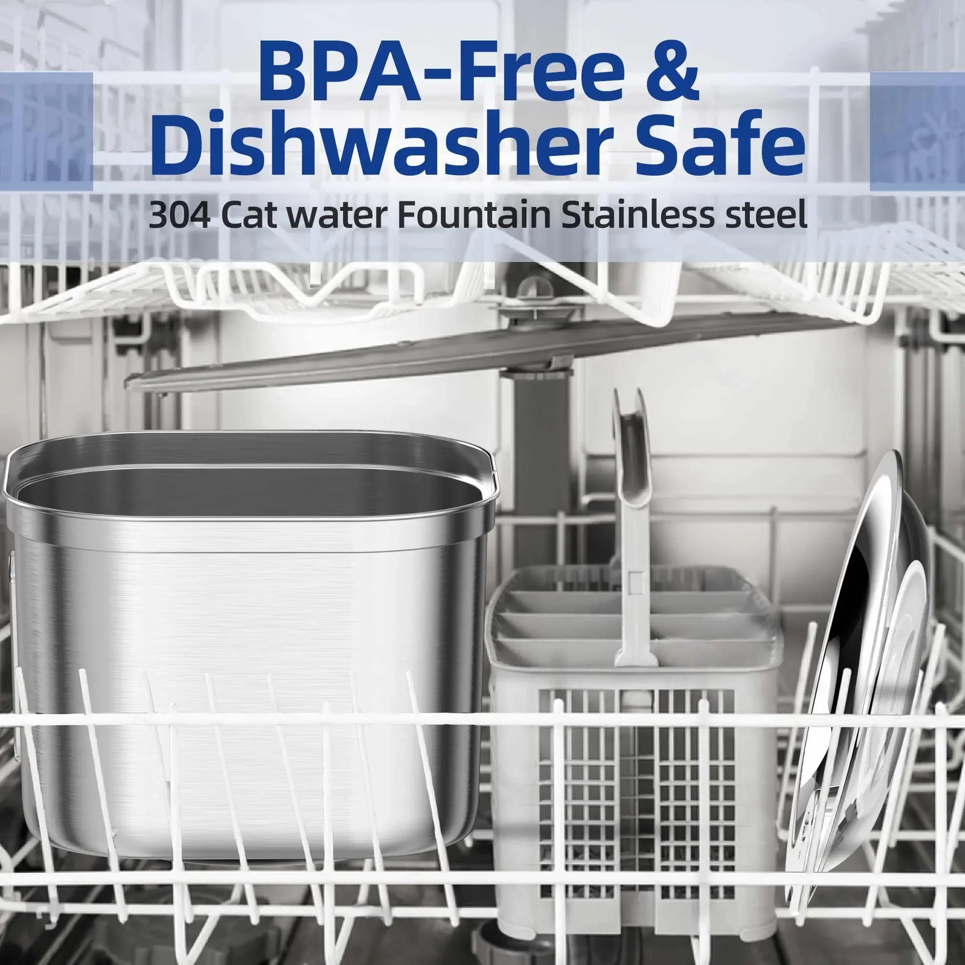 Cat Water Fountain Stainless Steel Pet Water Fountain for Cats Inside 1Filters&Ultra-Quiet Pump 2.2L/73oz Dog Pet Water Fountain