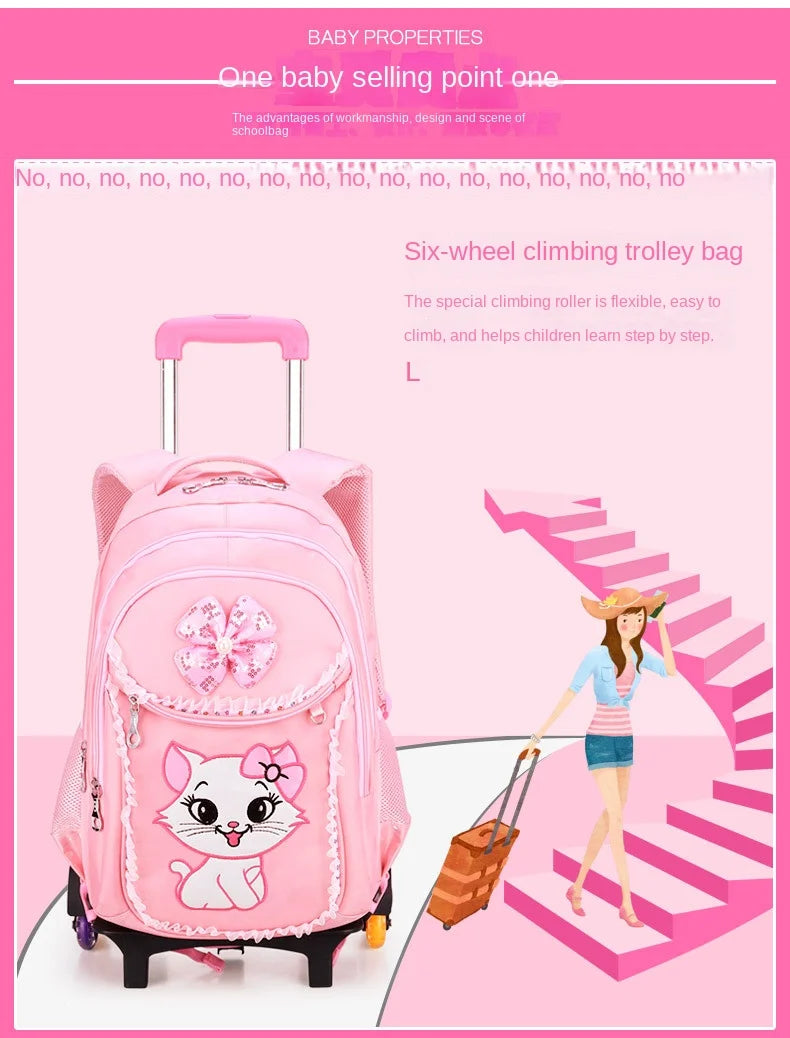 Children School backpack for Girls Cute Cat School Students Backpack For Kids Wheeled Backpack Bag Trolley School Bags On Wheels
