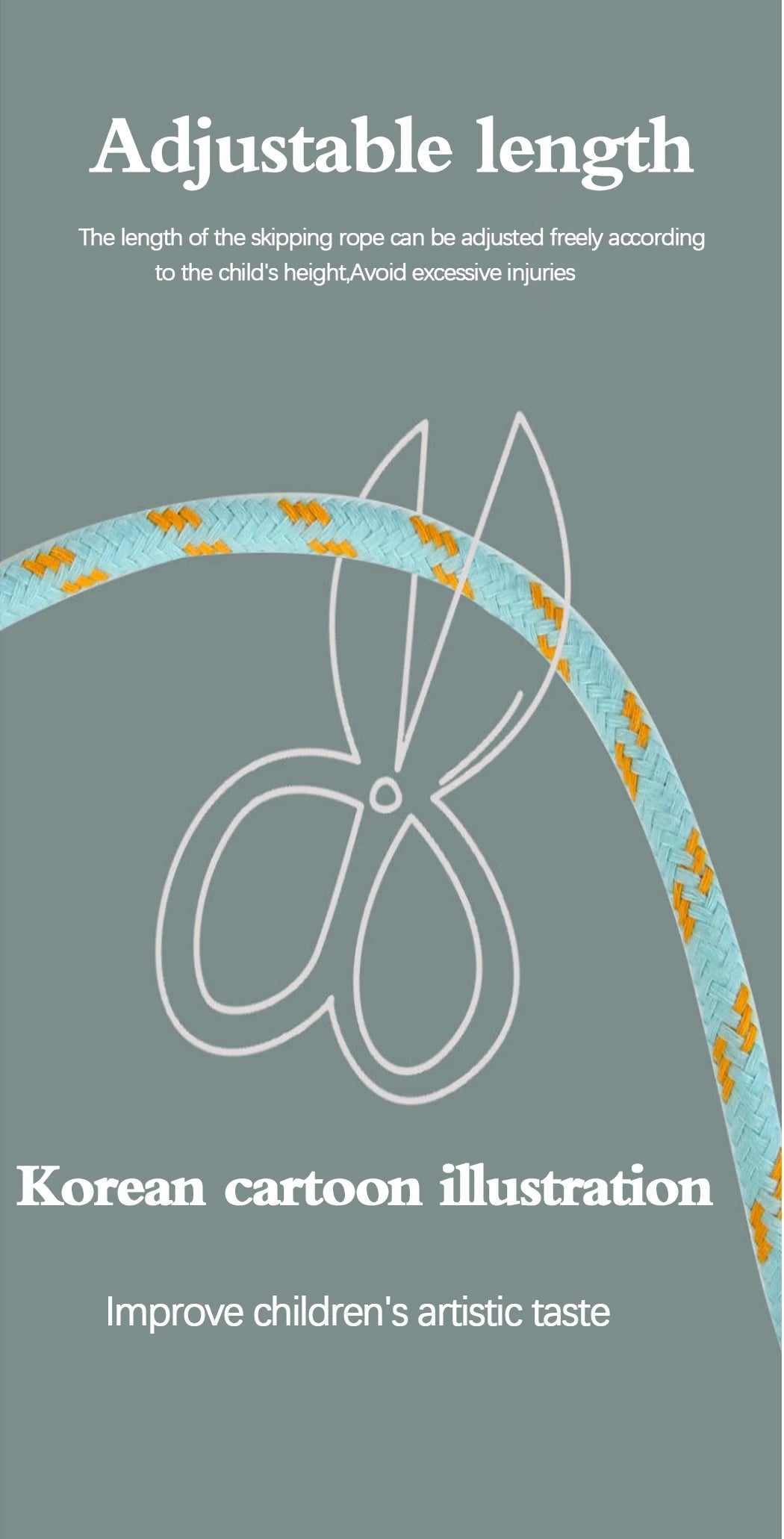 Children's Sports Adjustable Cotton Rope Ropes Sport Fitness Lovely Cartoon Skipping Natural Wooden Handle Fillet Design