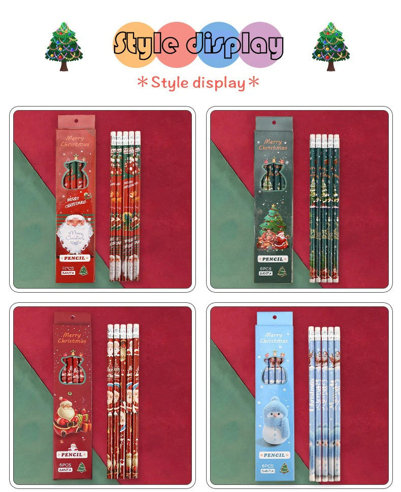 Christmas gift cartoon cute 6 HB pencil set with eraser box office cultural and educational supplies