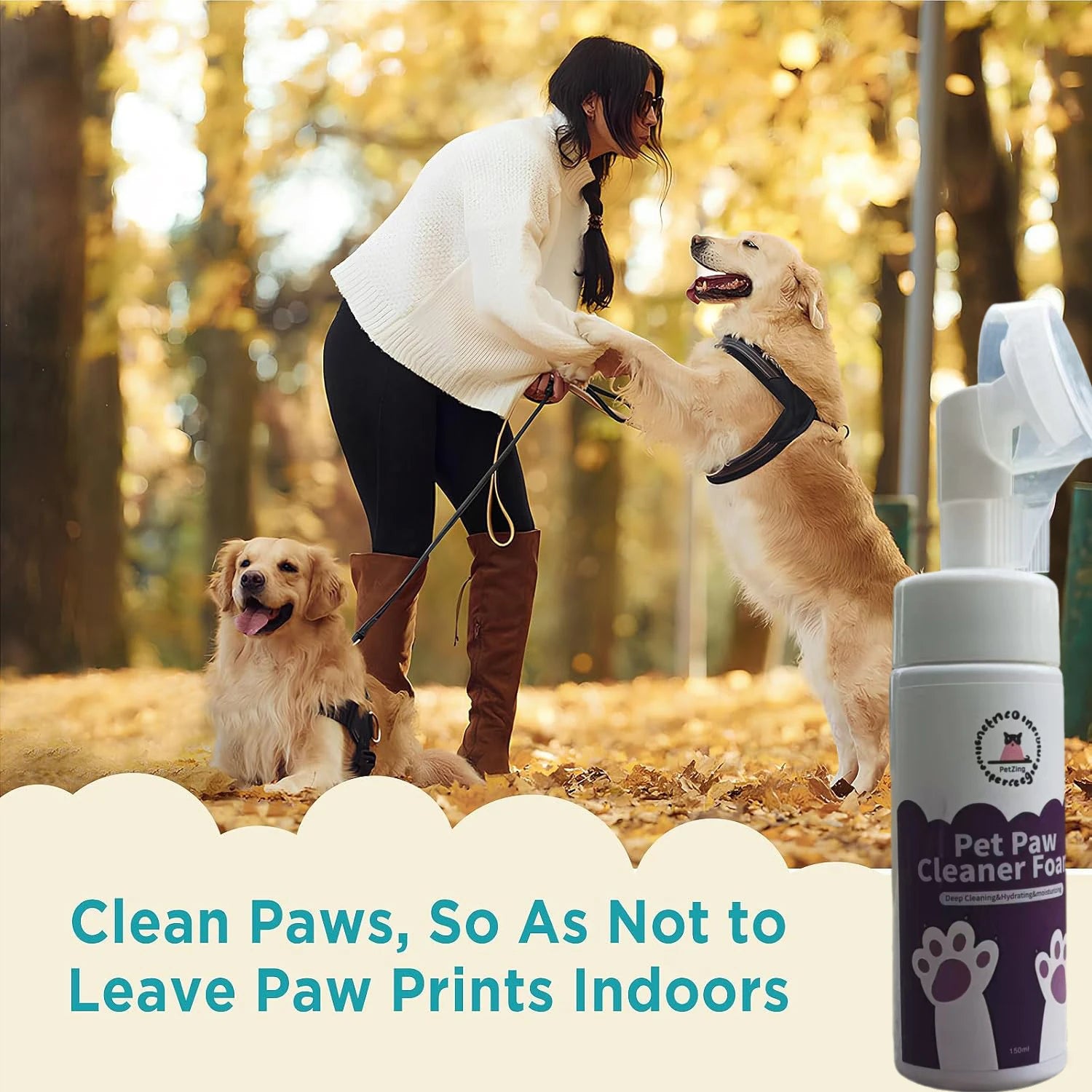 Clean Paws | No-Rinse Dog Paw Cleaner & Puppy Paw Washer | Gentle, Fragrance-Free, pH Balanced Foaming Cleanser with Silicone Br