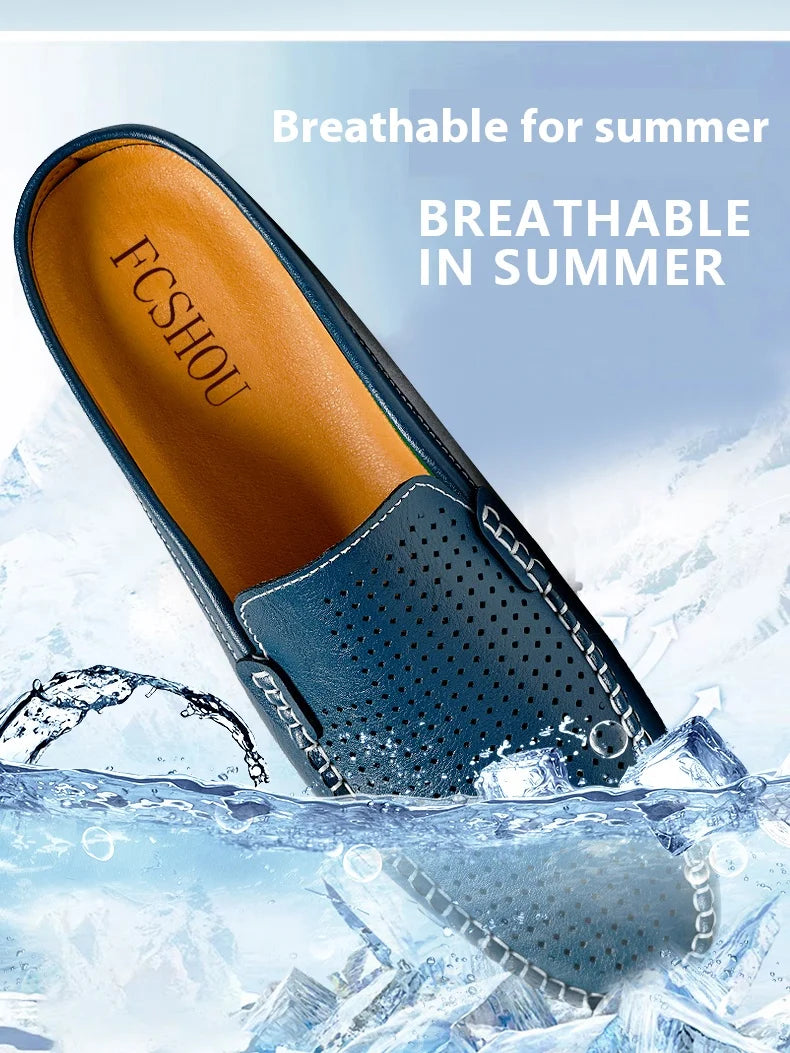 Closed Toe Half Shoes for Men Black Blue Mules Slippers Slip on Genuine Cowhide Leather Luxury Flat Sandals Man Summer 2025
