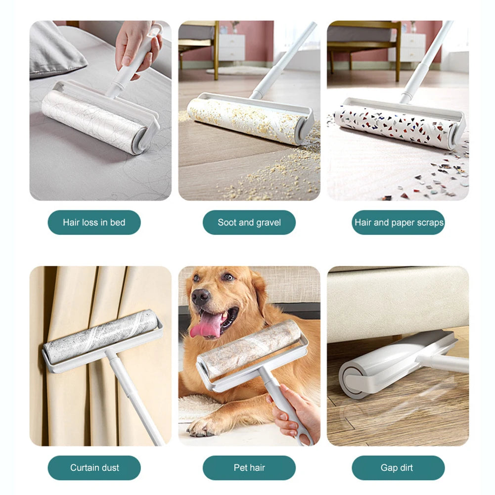 Feature 1: Large Cleaning Lint Roller with Long Handle