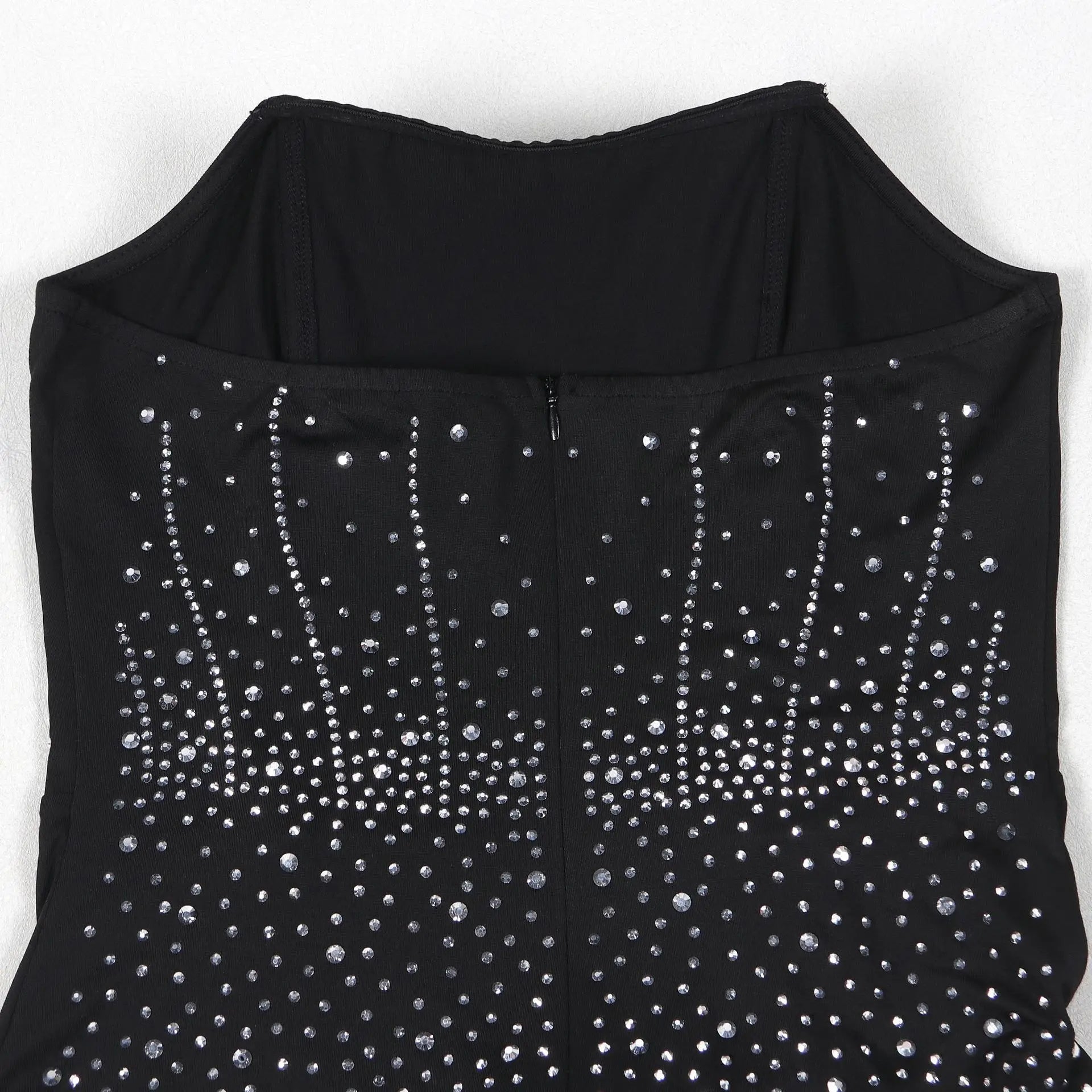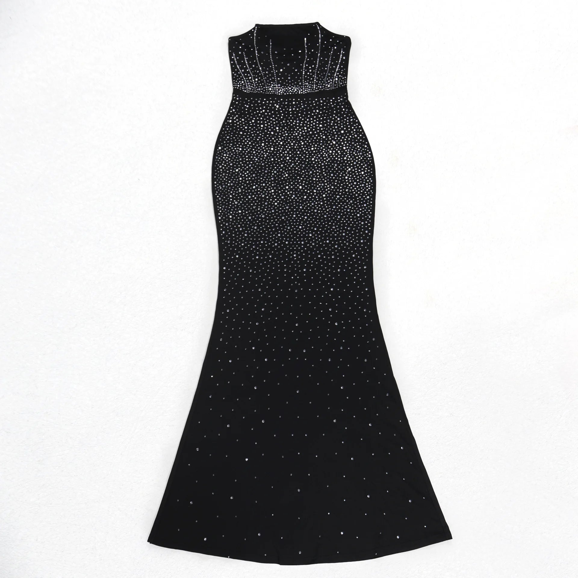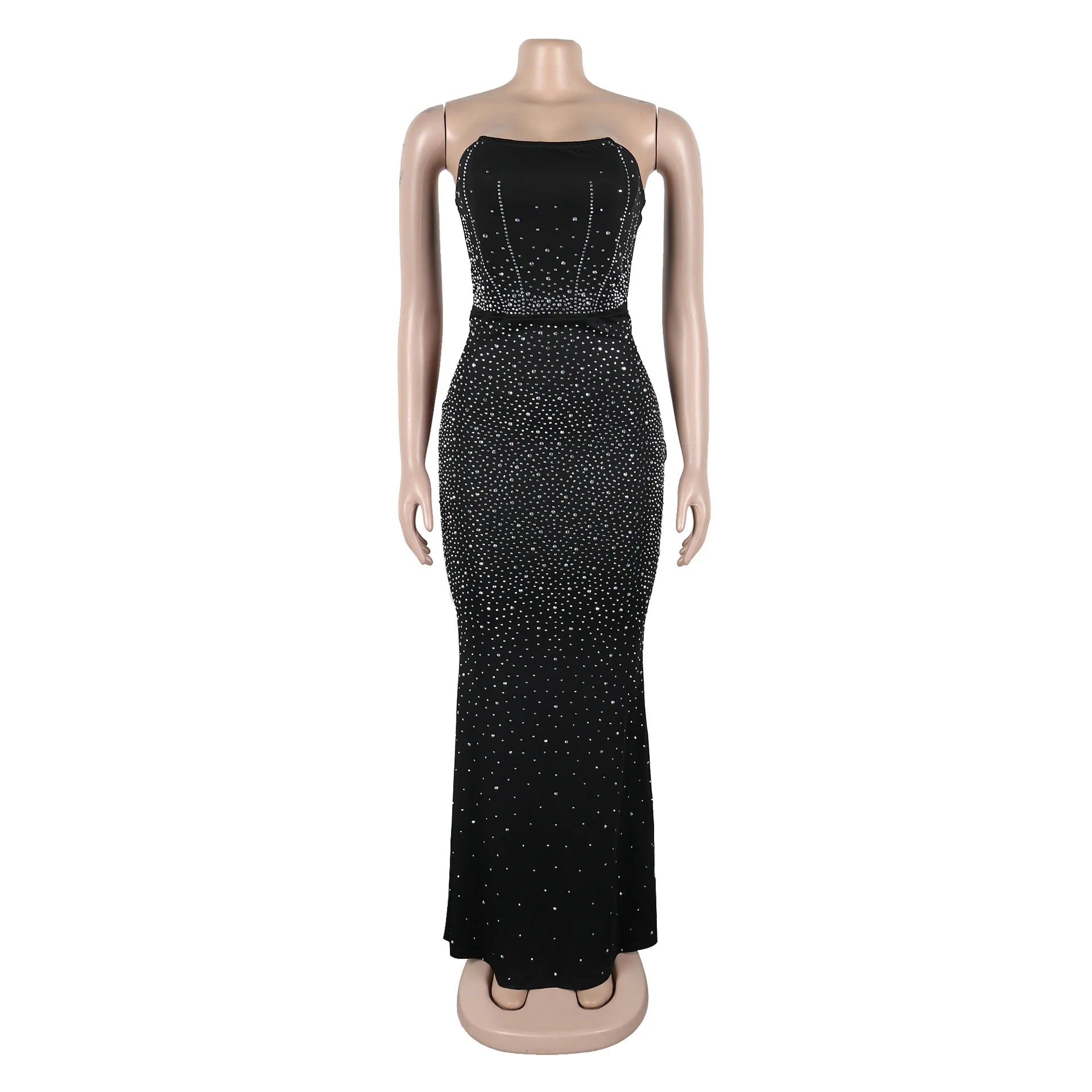 CM.YAYA Diamonds Hot Rhinestones Strapless Women Sleeveless Long Dress 2025 Spring Birthday Party Evening Prom Maxi Dresses