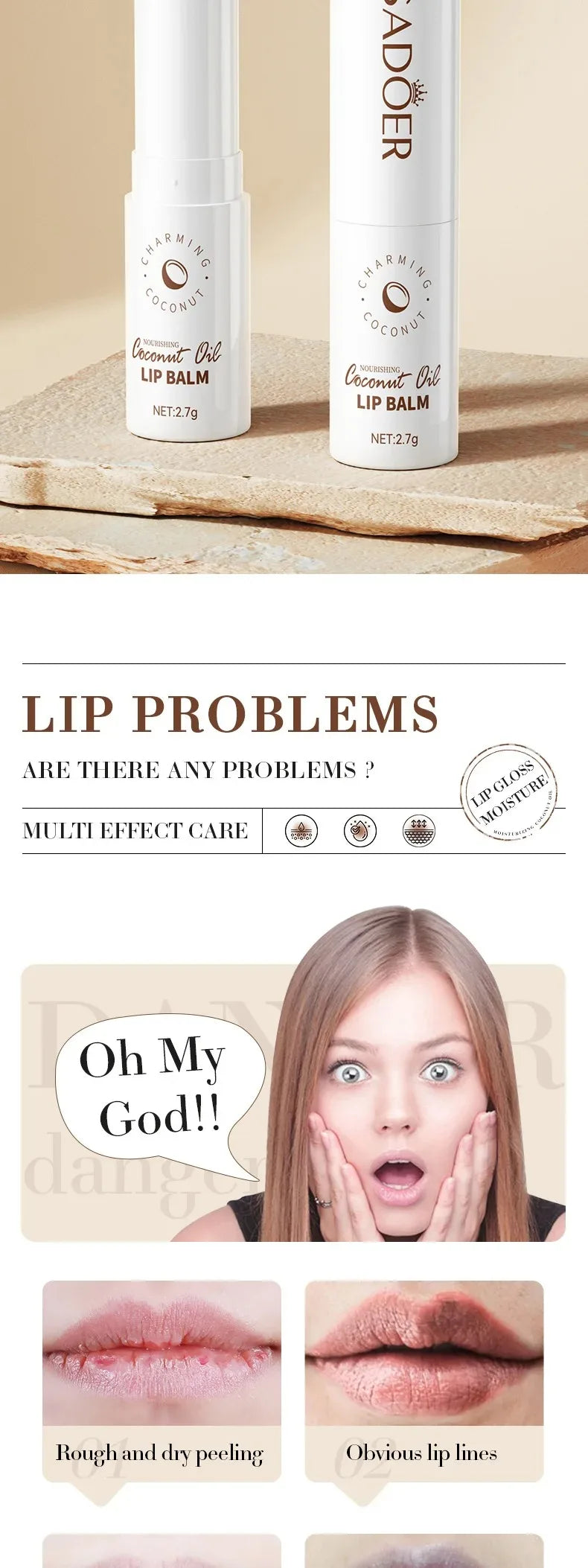 Coconut Moisturizing Lip Balm Anti-Dry Hydrating Removing Lip Wrinkles Dead Skin Lip Care Lasting Nourishment for Men Women