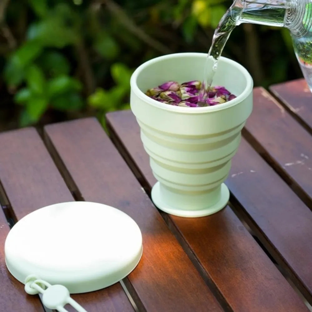 Collapsible Travel Cup Portable Folding Water Bottle for Camping, Hiking & Outdoor Activities, Space-Saving Silicone Drinkware