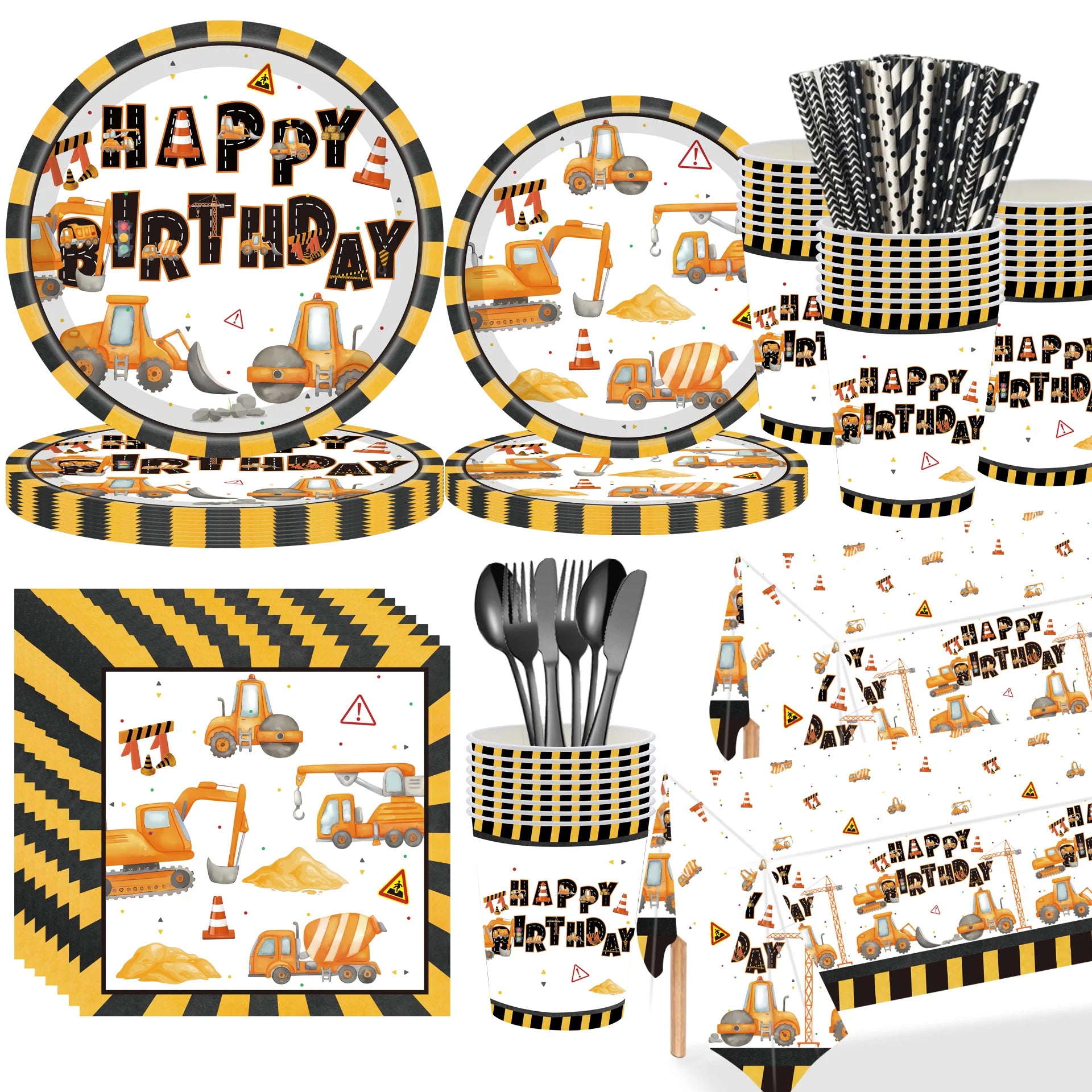Construction Party Disposable Tableware Plates Cups Napkins Tablecloth Construction Truck Party Decor Excavator Party Favors