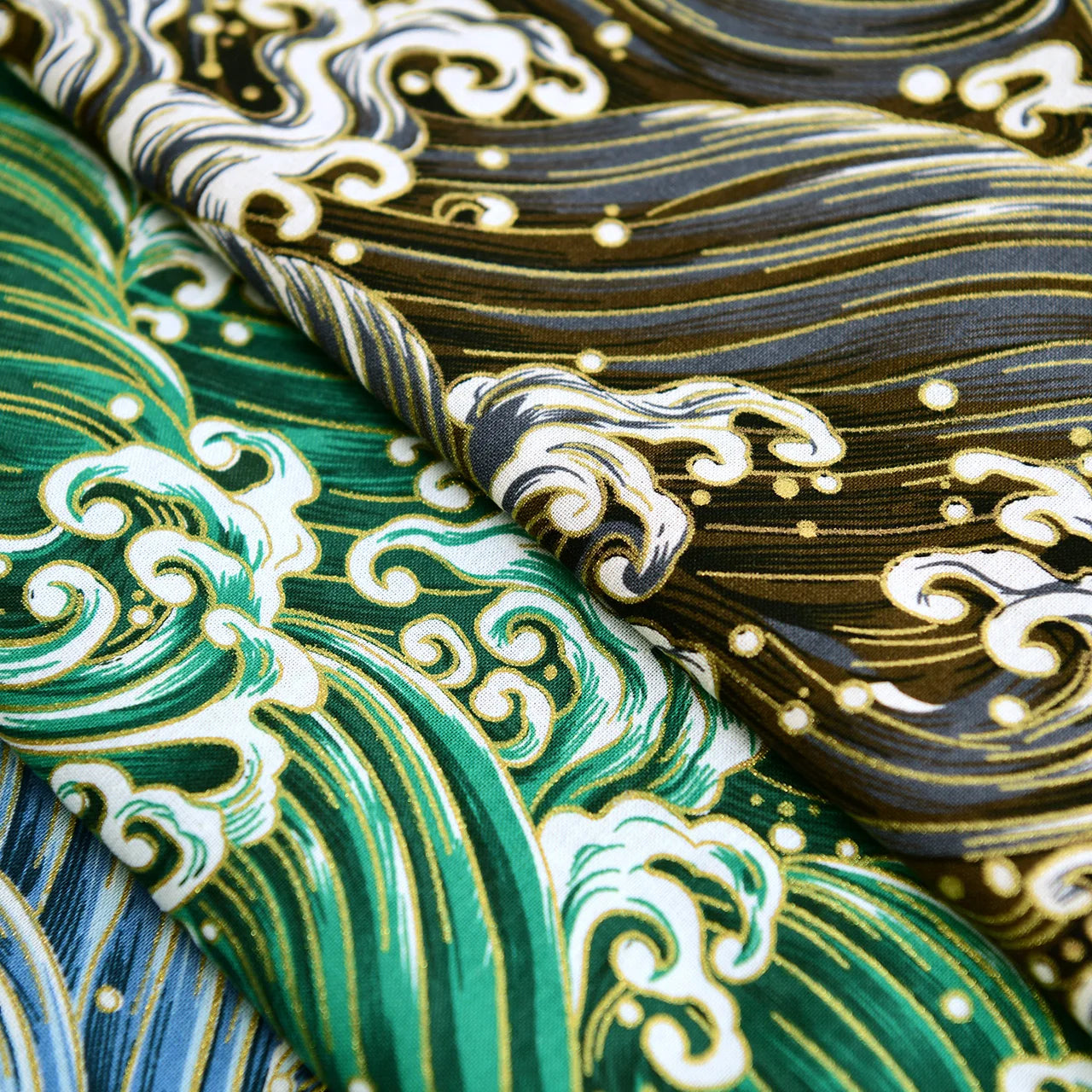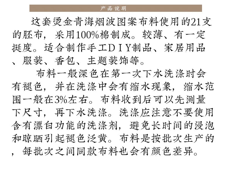 Cotton Bronzing Printing Fabric Handmade DIY Clothing Luggage Sachet Cotton Cloth Cotton Fabric Qinghai Smoke Wave, 145x50cm