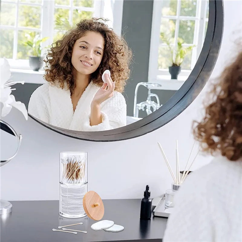 Cotton Swab Holder Bathroom Dispenser Storage Cotton Ball, Cotton Swab, Cotton Round Pads, Floss Picks - Clear Canister