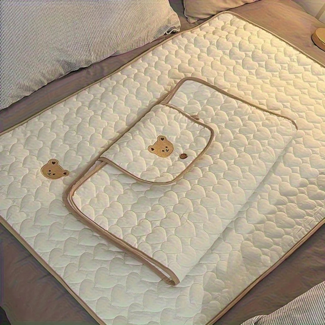 Cream Bear-Portable Diaper Changing Pad,Diaper Pouch-Foldable,Breathable with Adjustable Strap for Travel &Short Trip