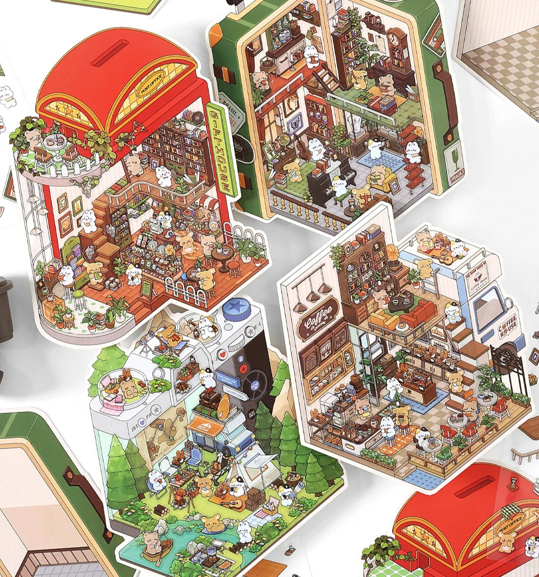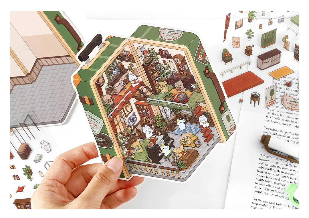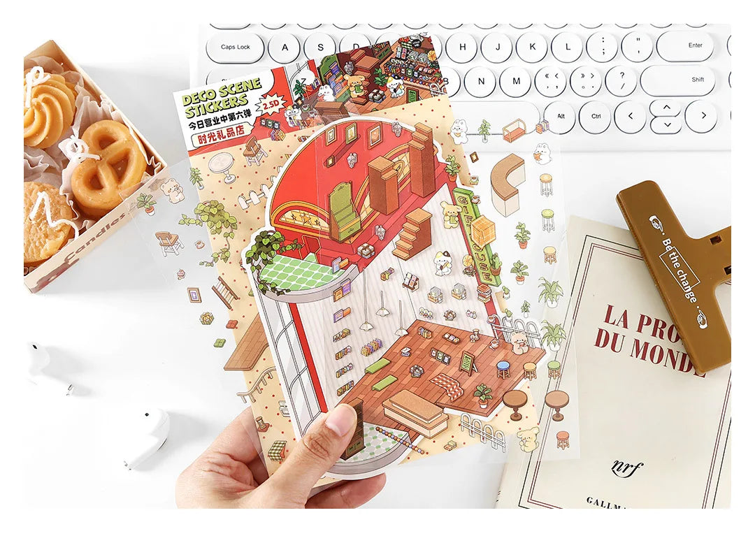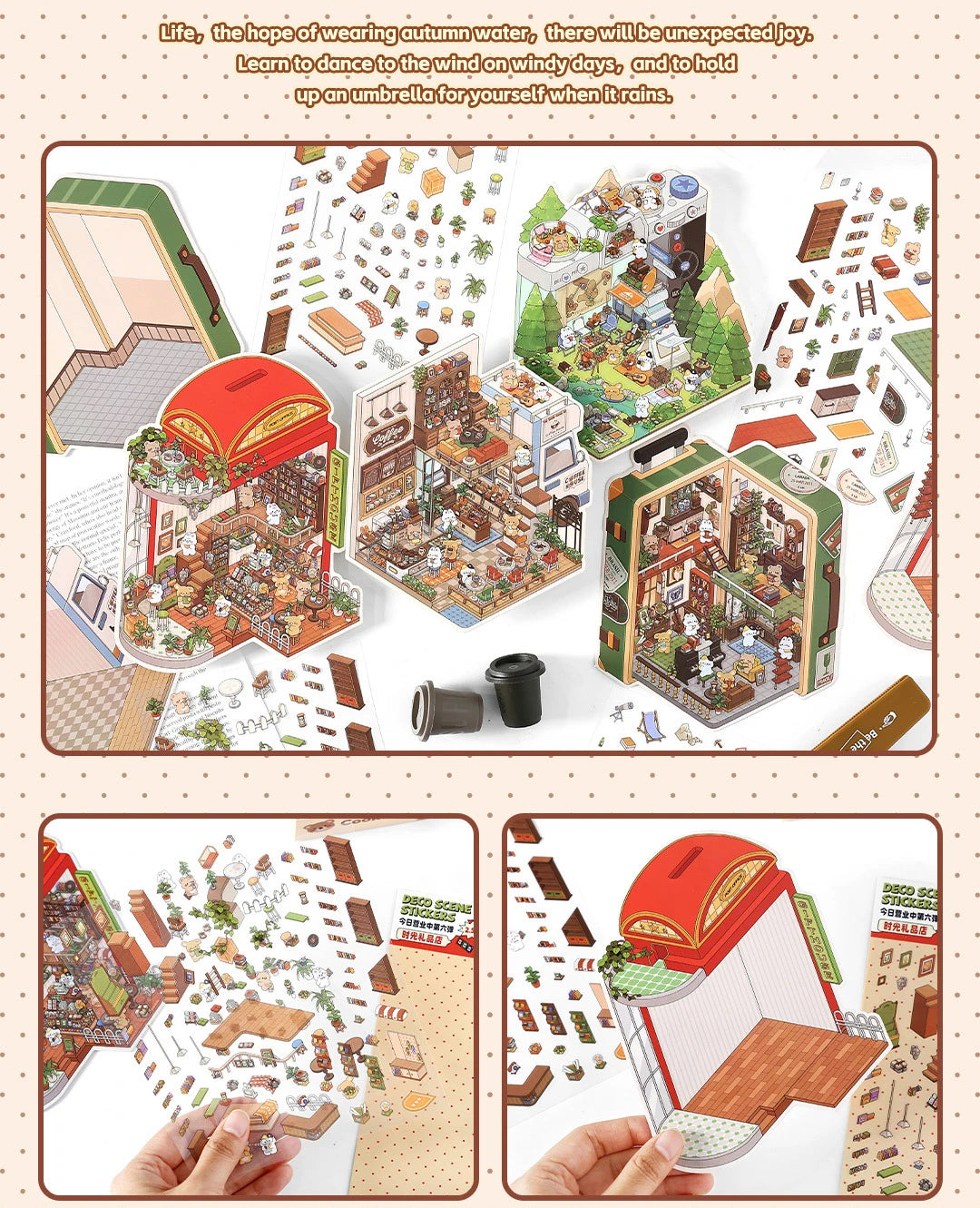 Creative Design Outdoor Scene Sticker for Student Cute Cartoon DIY Decor Landscaping Sticker Scrapbook Journal Student Sticker