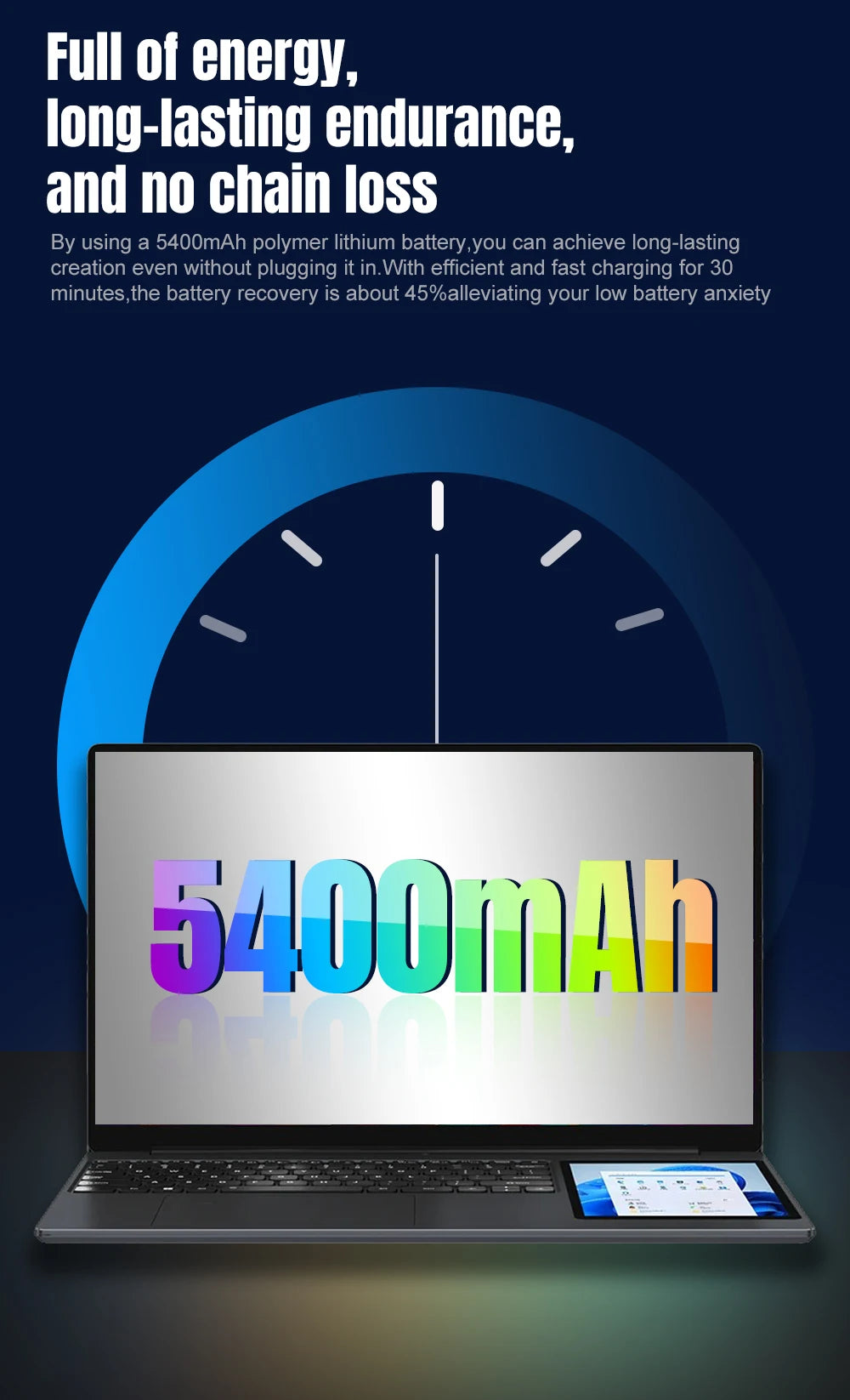 CRELANDER Intel laptop 15.6" +7" Touch Screen 32GB RAM 1TB SSD Backlit keyboard Windows 11 Notebook Computer Dual Screen Laptop