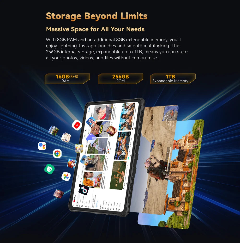 ROM: 256GB, Support TF cards up to 1TB expansion