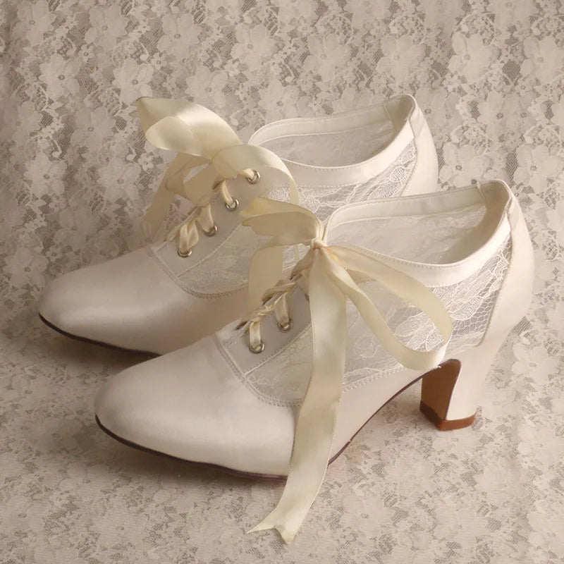 Customized Block Heels for Ladies Wedding Shoes Womens Ivory White Bridal Boot 7.5CM
