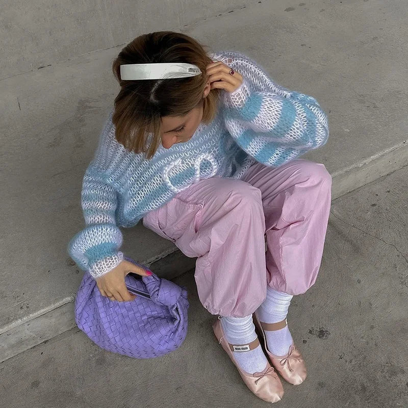 DGLUKE Striped Oversized Sweaters For Women Autumn Winter Knitted Wool Sweater And Jumpers Lantern Sleeve Pullover Sweatshirt