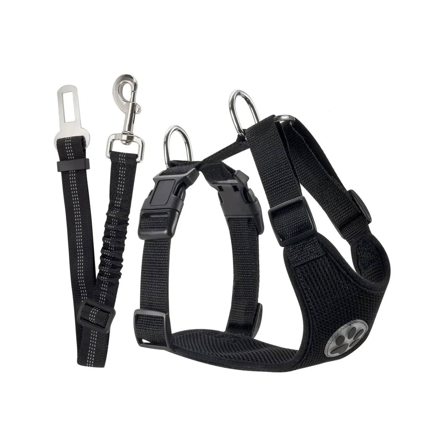 Dog Car Harness Seatbelt Set, Dog Vest Harness Adjustable with Breathable Mesh & Vehicle Safety Seat Belt Tether with Elastic