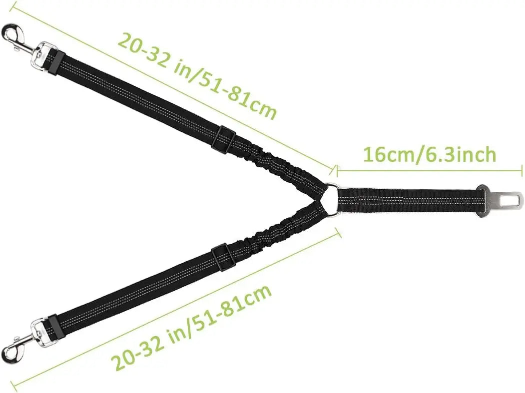 Dog Seat Belt, Double Dog Seatbelt Adjustable Vehicle Safety Leash with Elastic Bungee Buffer, Reflective No Tangle Y Shape Two