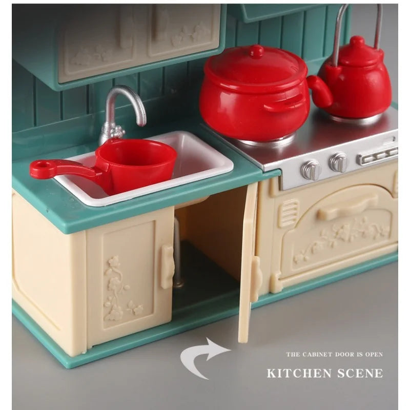 Dollhouse Furniture Set Doll house Bathroom/Kitchen/Fridge/Washing Machine Laundry Kids Doll House Miniature Pretend Play Toys