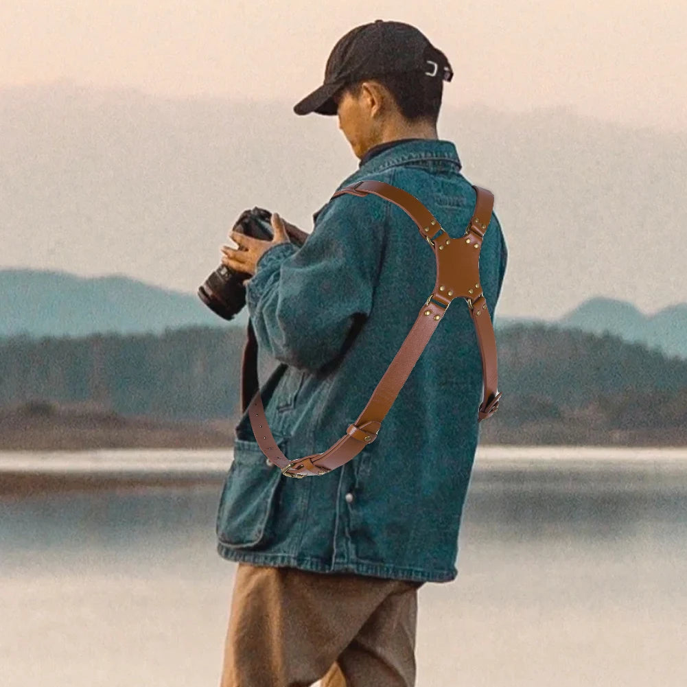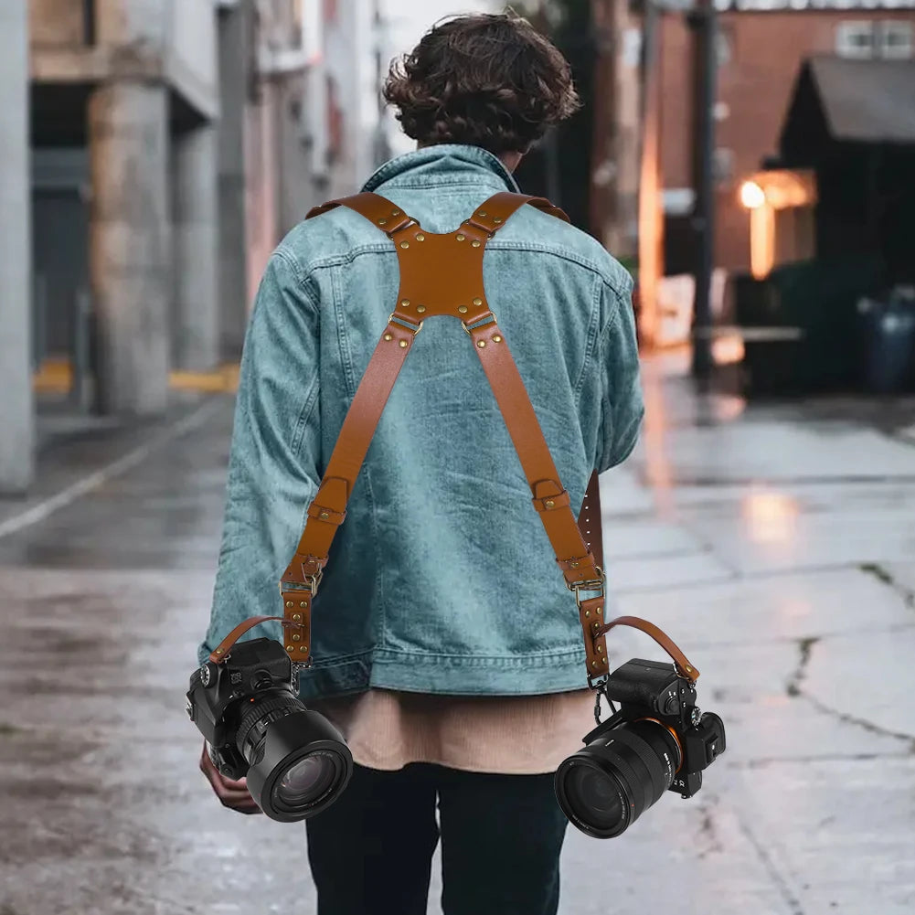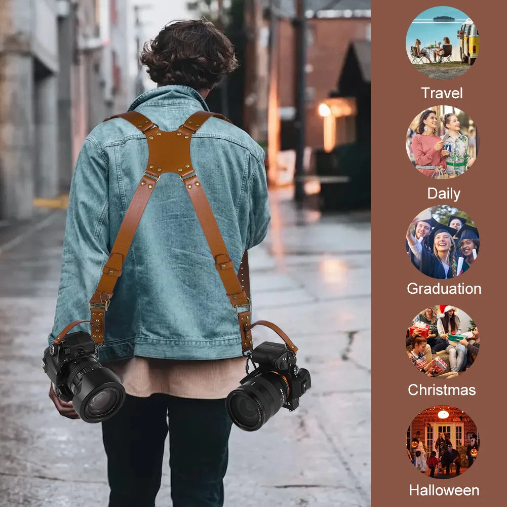 Dual Camera Strap Double Camera Harness Adjustable Leather Camera Straps Universal Camera Shoulder Strap for DSLR/SLR Cameras